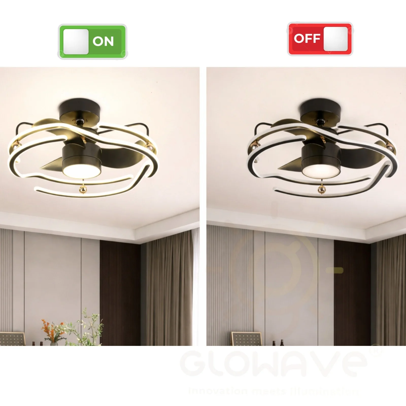 Upgrade your interior with this Modern 3C LED Ceiling Fan with Designer Ring Light, a perfect blend of performance and contemporary aesthetics. Crafted with a premium black finish body and stylish curved LED rings, this ceiling fan enhances your living room, bedroom, dining area, or office with both airflow and ambient illumination.