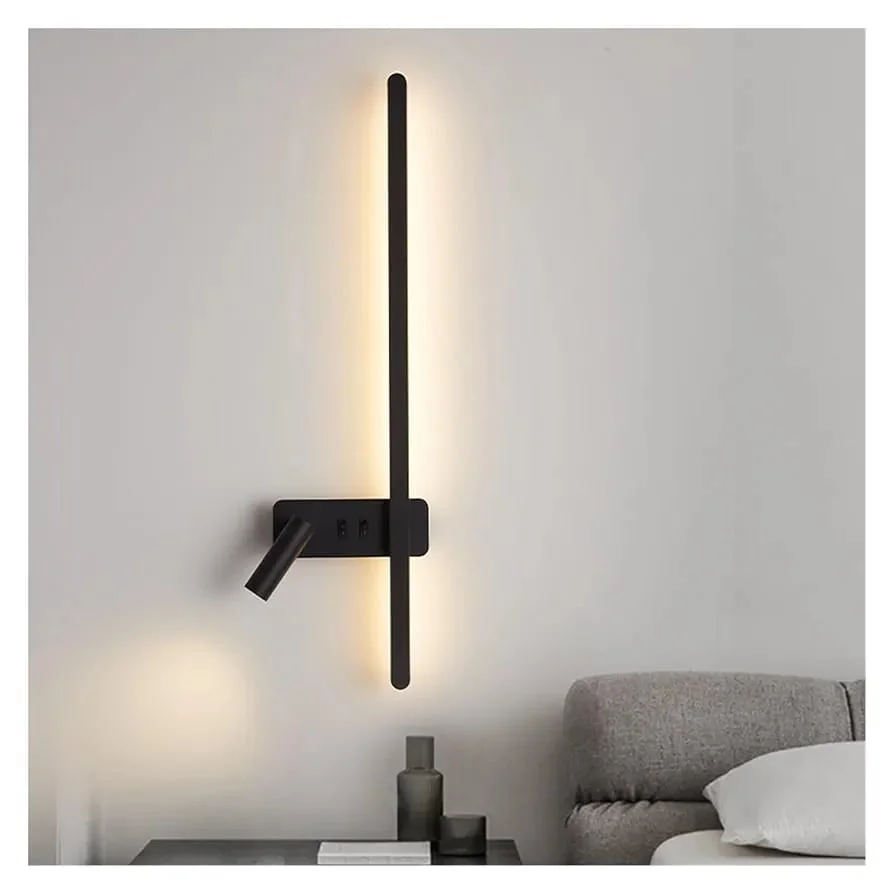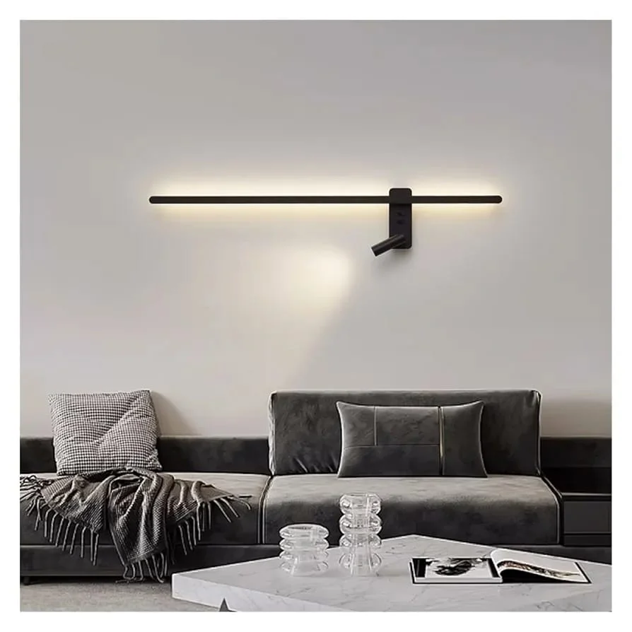 Black LED Wall Lamp with Adjustable Spot Light - Tricolour