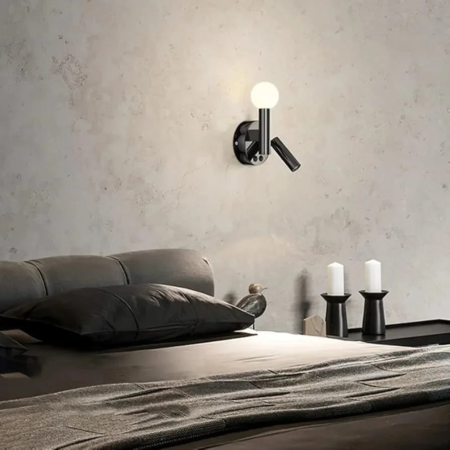 Black LED Wall Lamp with Adjustable Spot Light - Tricolour