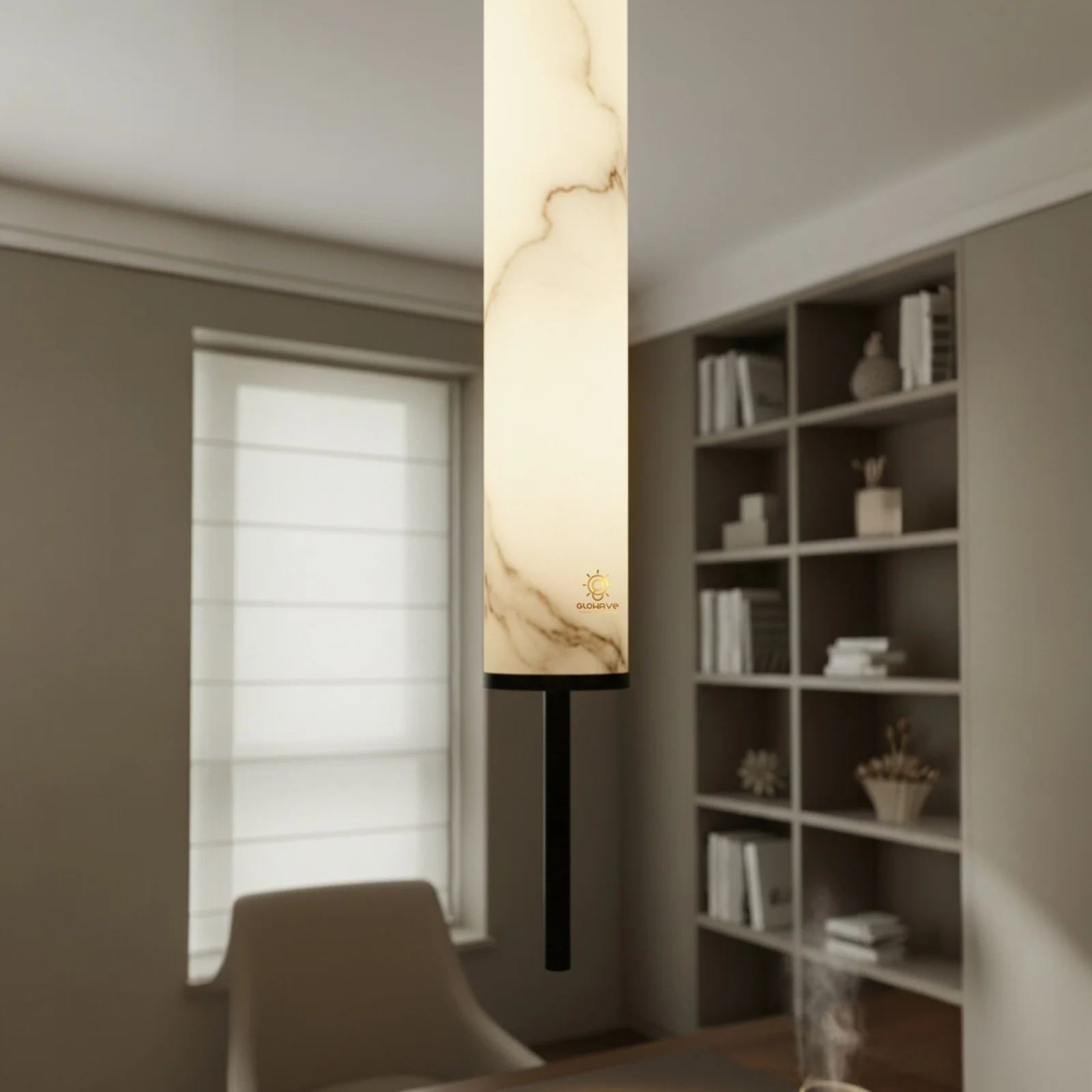 Ceiling Lamp with Natural Glowing Marble Cylinders & Bright Downlight - Warm White