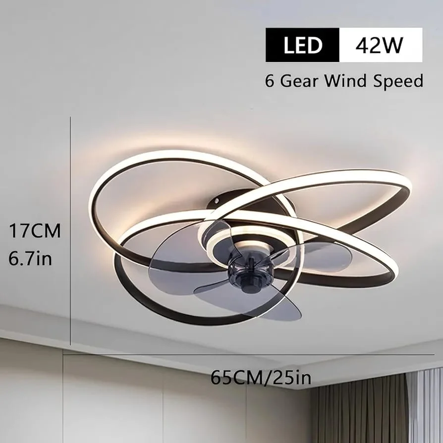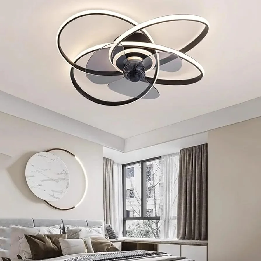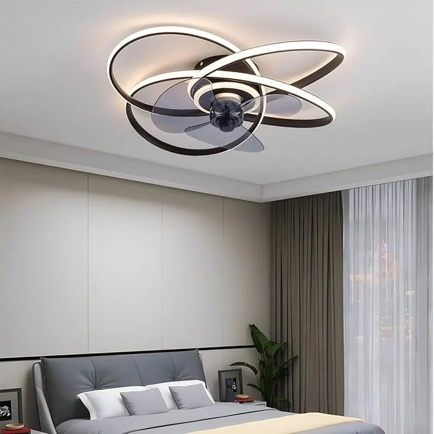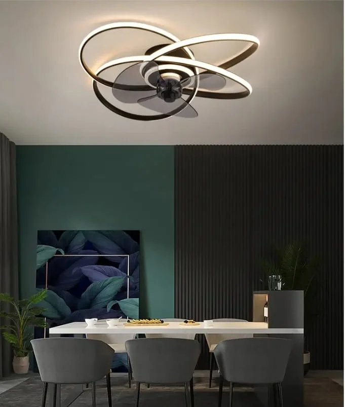 Elevate your living space with the Luxury Black Profile Ceiling Fan Chandelier. This stunning fan lighting fixture features a sophisticated design with subtle profile accents, adding a touch of luxury to any room. With three adjustable color lights, it seamlessly adapts to your desired ambiance. Ideal for living rooms, bedrooms, dining areas, entrances, showrooms, and cafés, this versatile chandelier combines style and functionality. The fan blades provide efficient air circulation when extended and a sleek, unobtrusive look when retracted. Enjoy a blend of elegance and practicality with this exquisite ceiling fan chandelier.