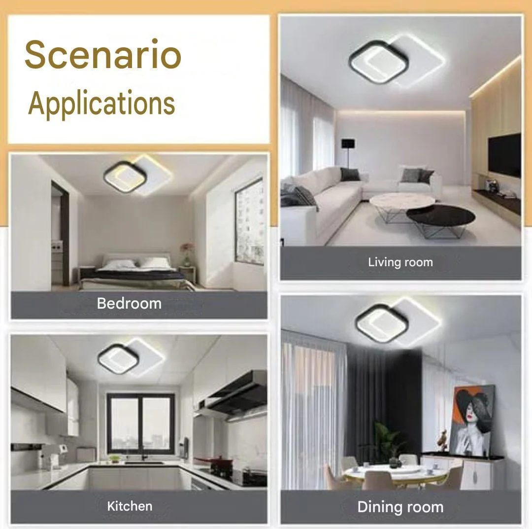Black White Profile Light Double Sqaure Ceiling Lamp - Tricolour