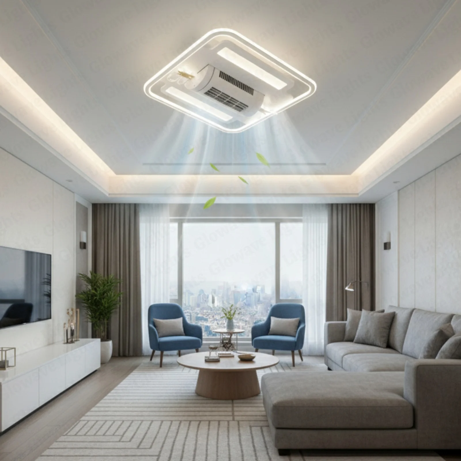 Bladeless Rectangular Fan with Light White Body Ceiling Fan - Tricolour
