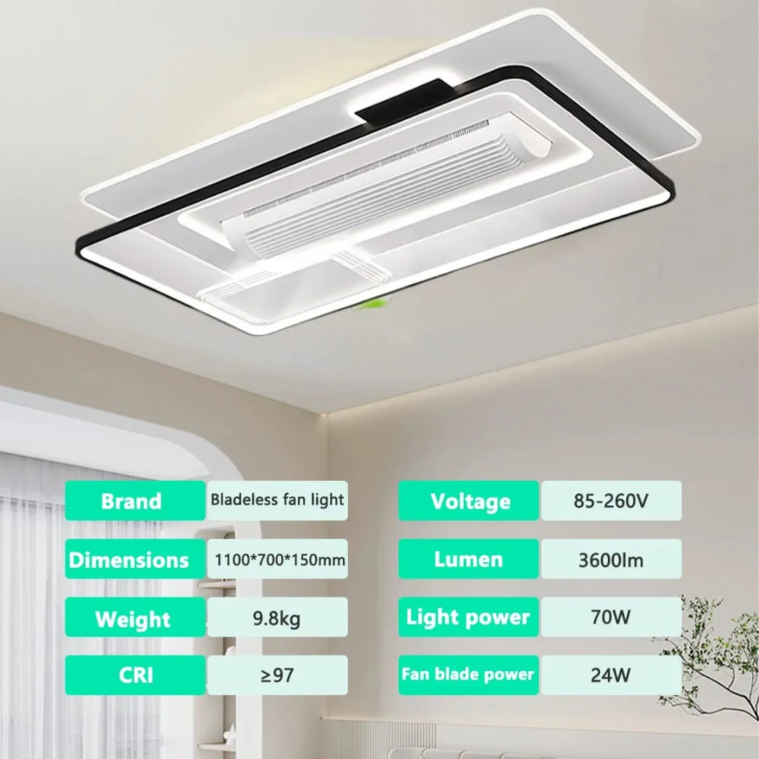 Bladeless Fan with Light White Body Square Ceiling Fan - Tricolour