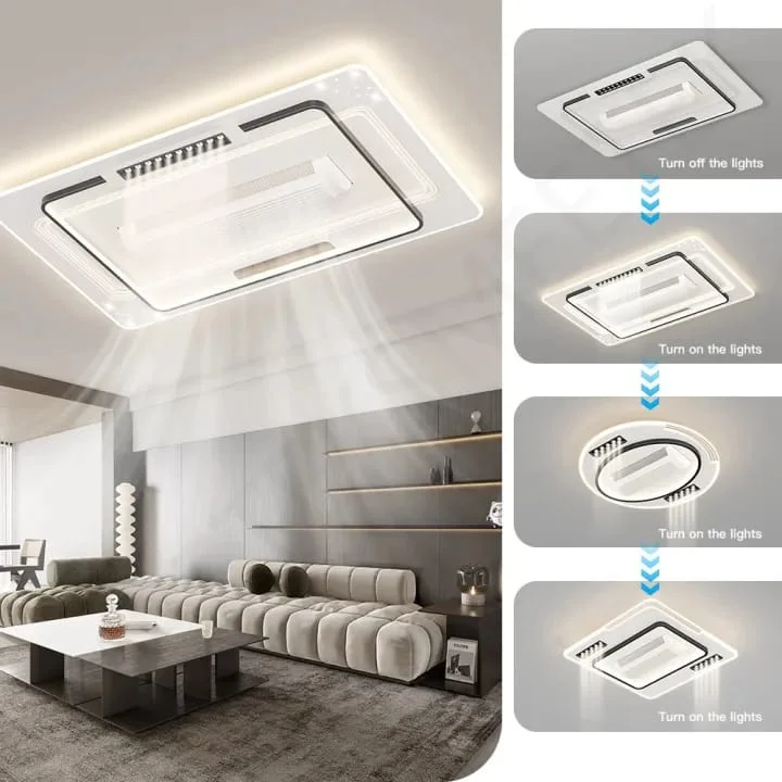 Bladeless Fan with Light White Body Square Ceiling Fan - Tricolour