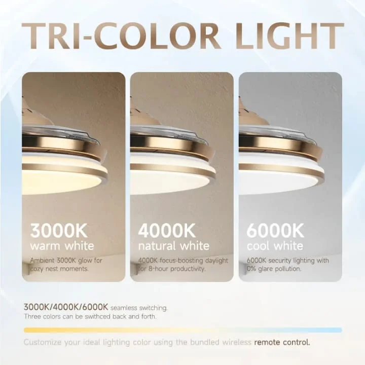 Ceiling Fan Light 42 Inch Golden Retractable Blades Remote Control - Tricolour (GD7721)