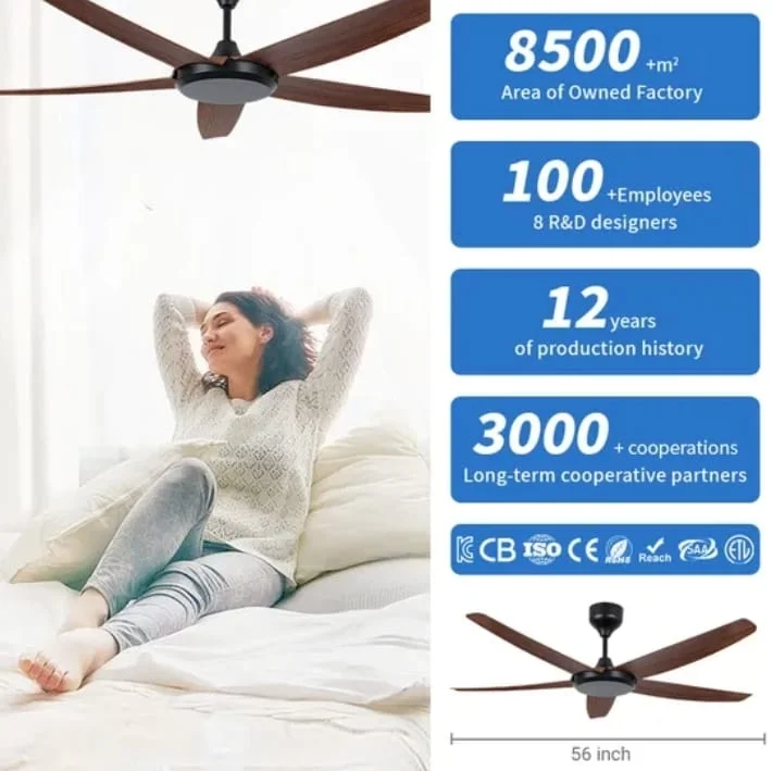 Wooden Ceiling Fan with Remote Control Gold Finish Motor, 5 Blade Decorative Ceiling Fan