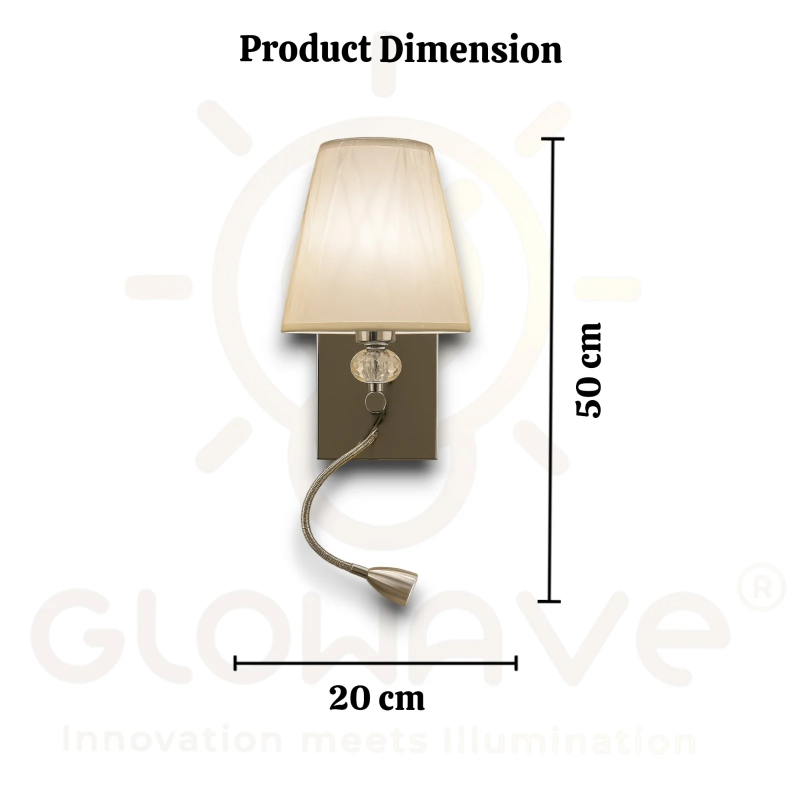 Chrome Body Fabric Lampshade Wall Lamp with Adjustable LED Spot Light - Warm White