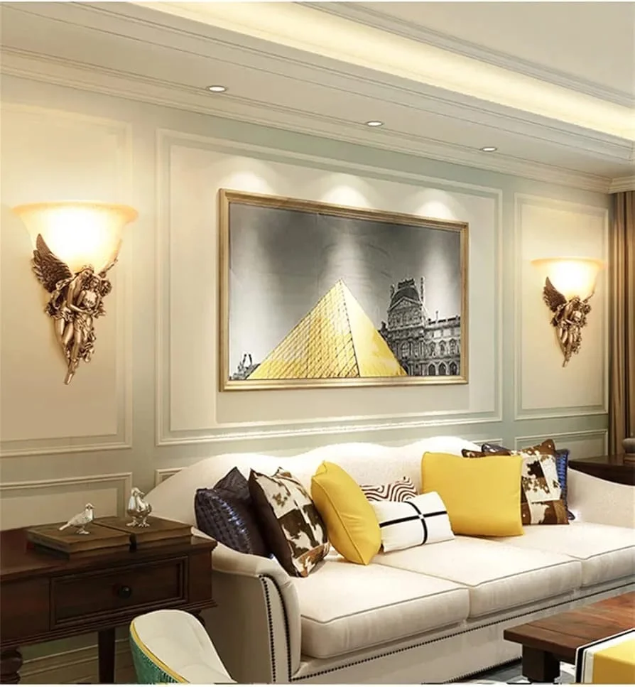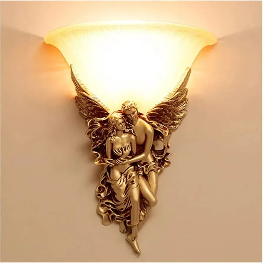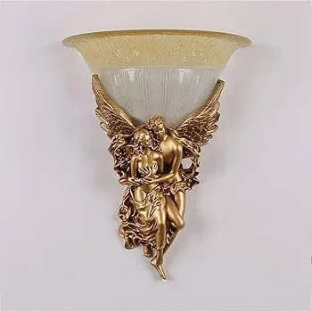 Add a touch of timeless elegance and artistic charm to your interiors with this Vintage Angel Wall Light. Designed in a classic European style, this decorative wall sconce features a beautifully sculpted angel couple with detailed wings, finished in a rich antique gold tone. The frosted glass shade diffuses light softly, creating a warm and inviting ambience while enhancing the luxurious appeal of your space.