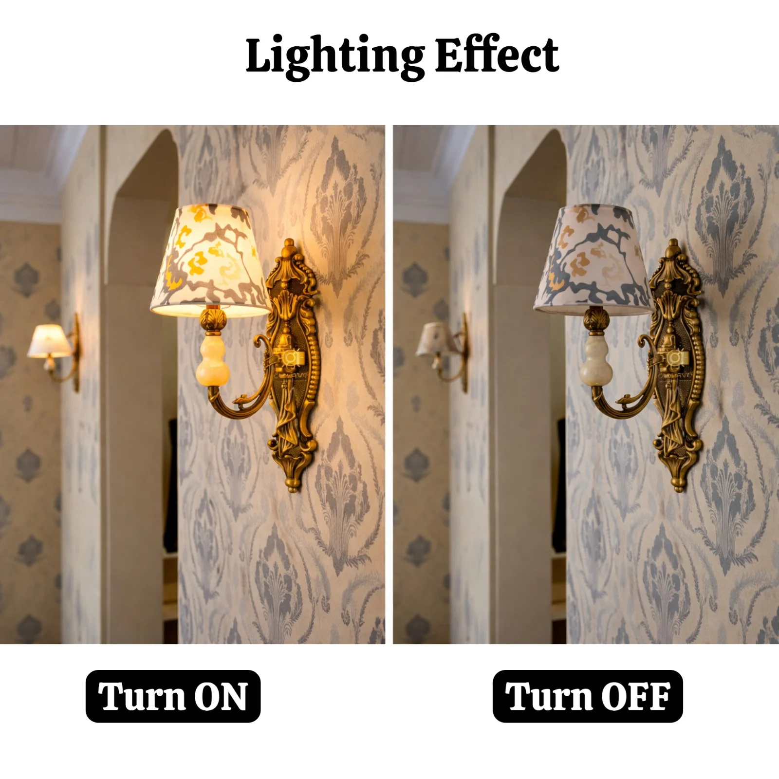 Add timeless elegance to your interiors with the Glowave Vintage Classic Wall Light. Crafted with an intricately designed antique gold metal body and paired with a premium patterned fabric lampshade, this wall light creates a warm and luxurious ambience. Its classic European-inspired design enhances both traditional and contemporary spaces, making it perfect for living rooms, bedrooms, corridors, hotels, and upscale interiors. Designed for durability and visual appeal, this wall lamp is a statement piece that elevates any wall it adorns.