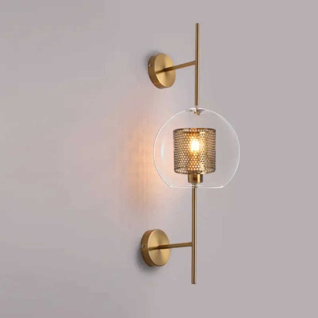Clear Glass Golden Finish Light Wall Lamp - Warm White