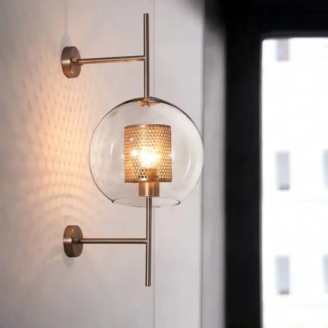 Elevate your living space with the Modern clear Glass Golden Finish Wall Lamp. This elegant lighting fixture, perfect for your living room, bedroom, or bedside, features a sleek golden finish and contemporary glass balls design. It provides a warm white glow that creates a cozy ambiance.