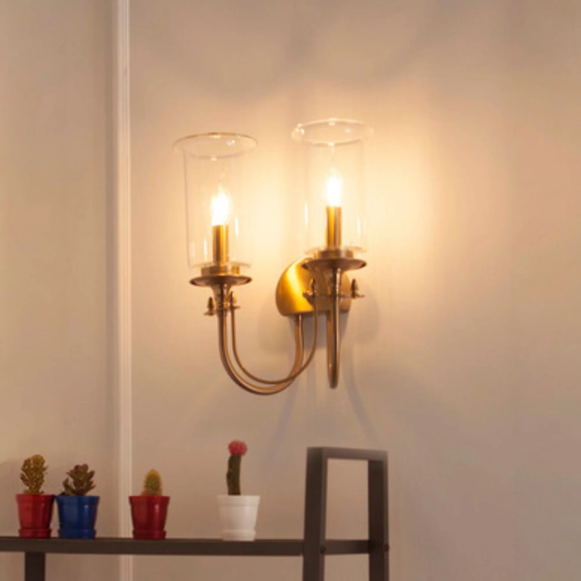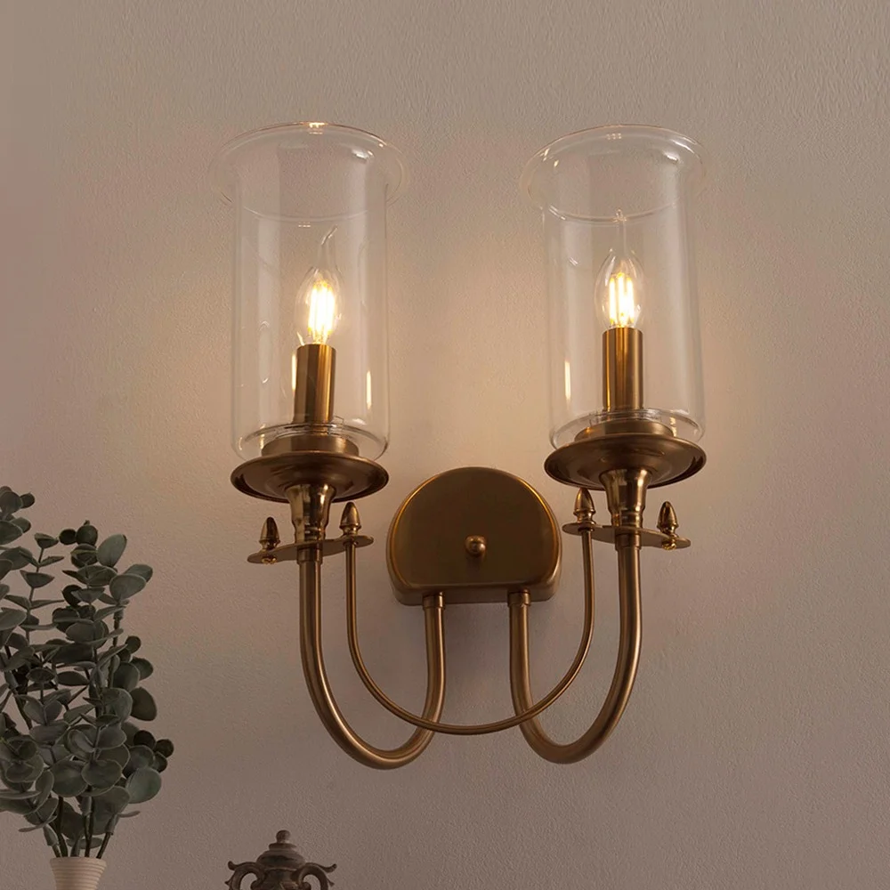 Creative Amber Glass Gold Finish Double Head Light Wall Lamp - Warm White