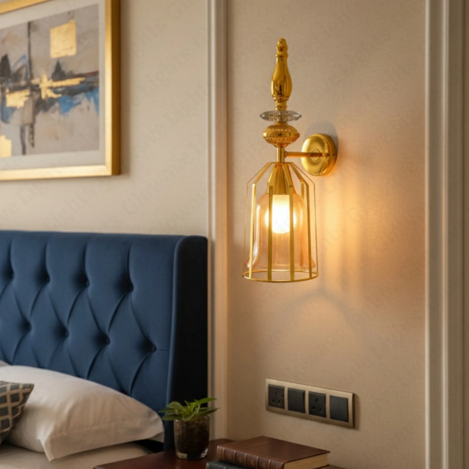 - Stylish Design: Down amber glass lampshade with a golden finish metal body