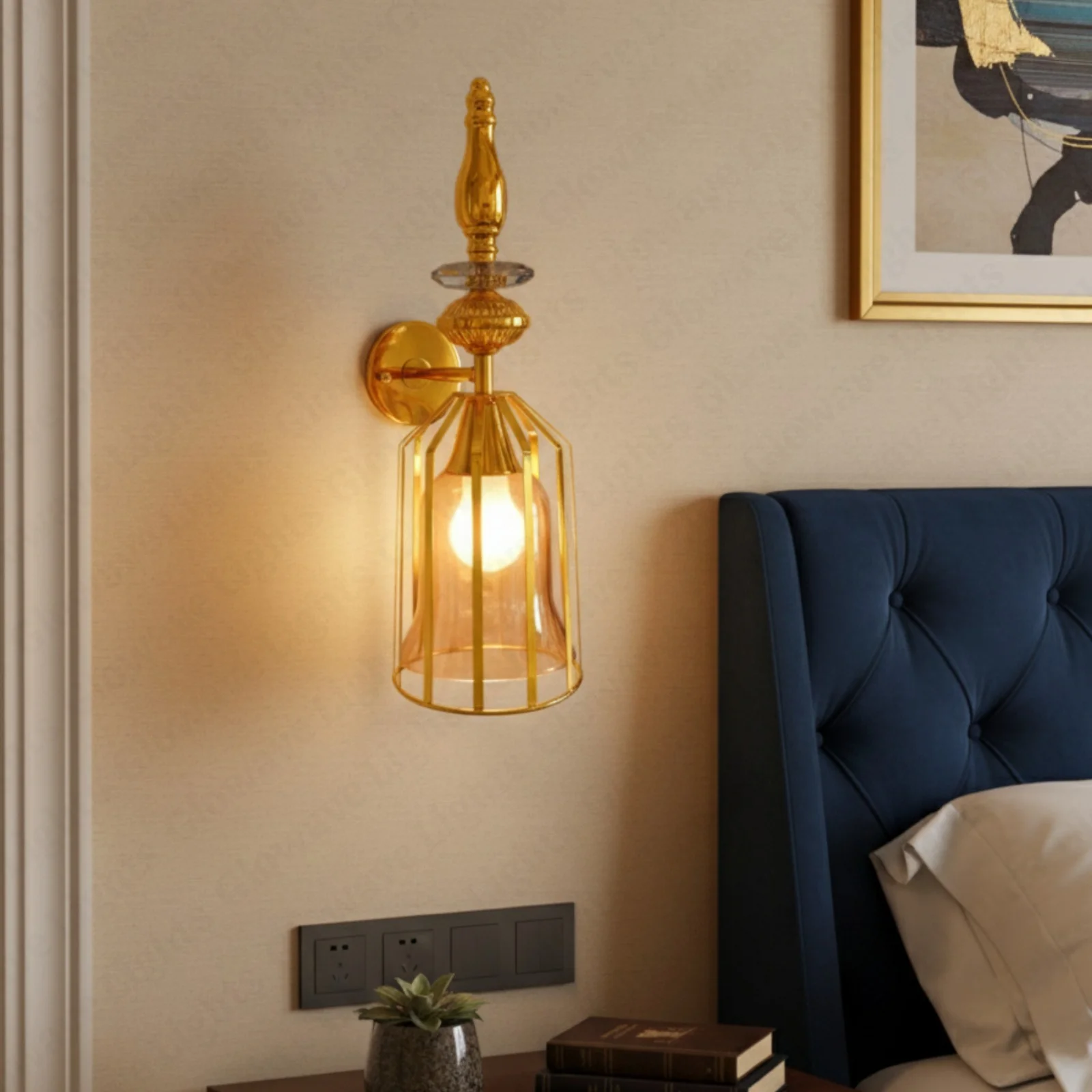 Creative Amber Glass Golden Finish Body Light Wall Lamp - Warm White