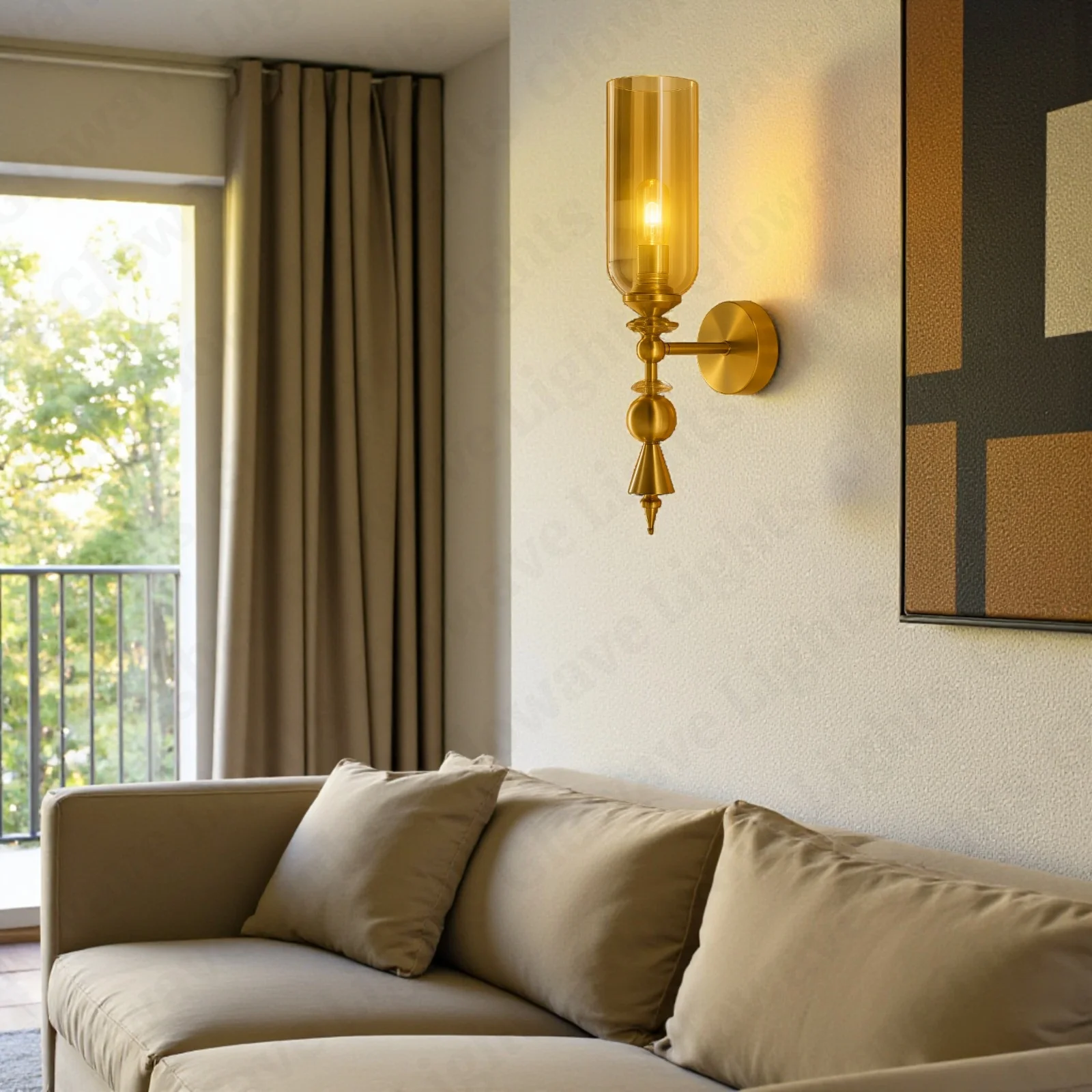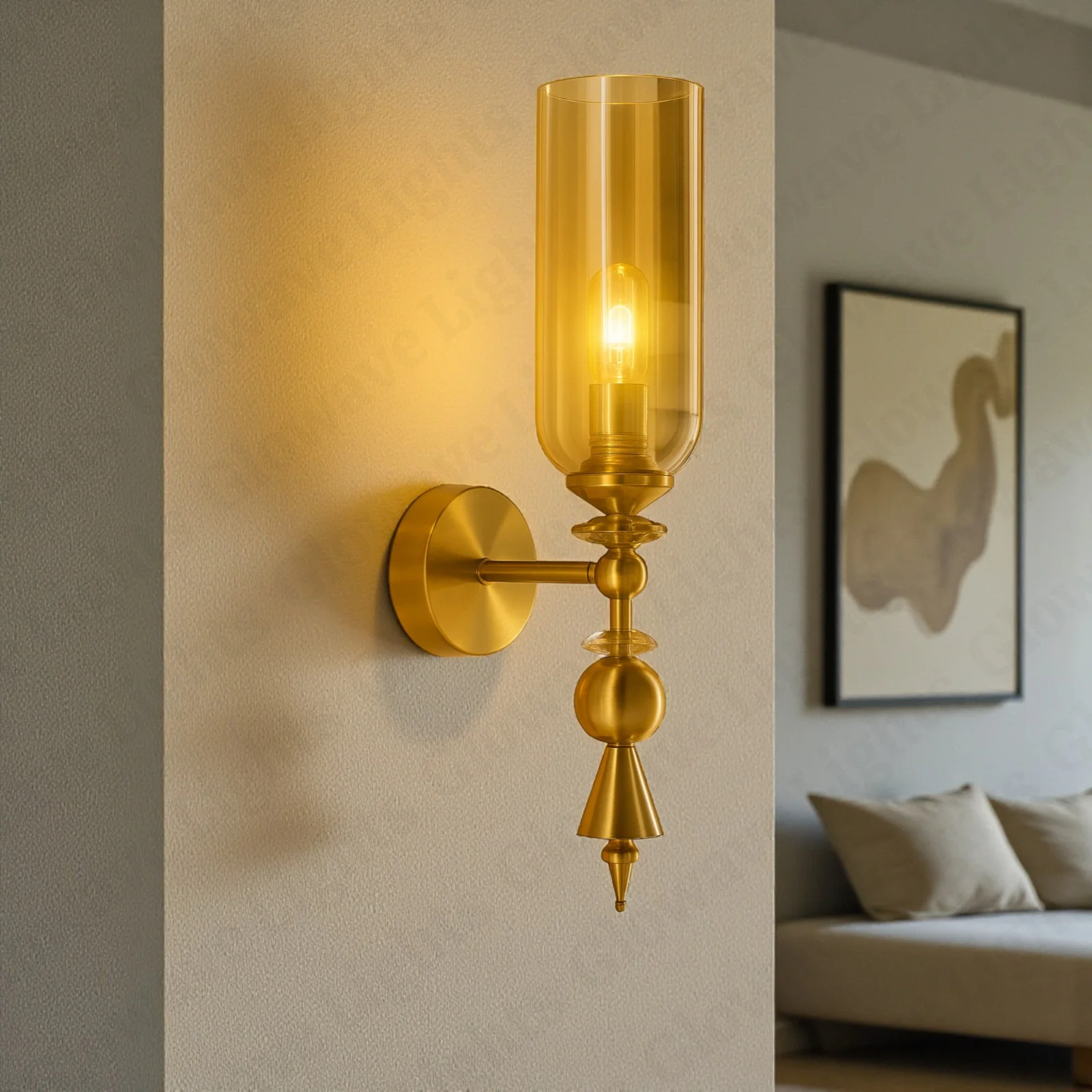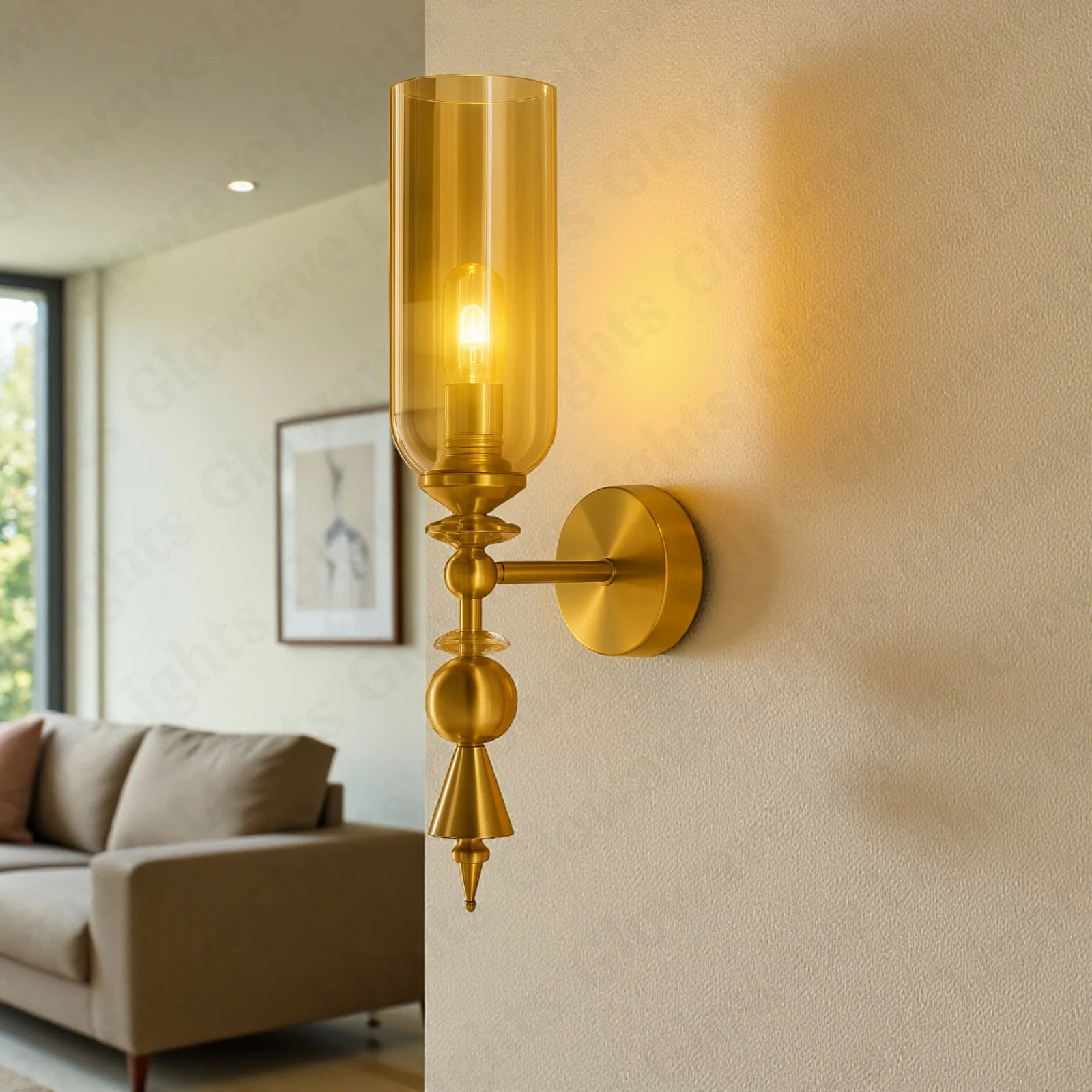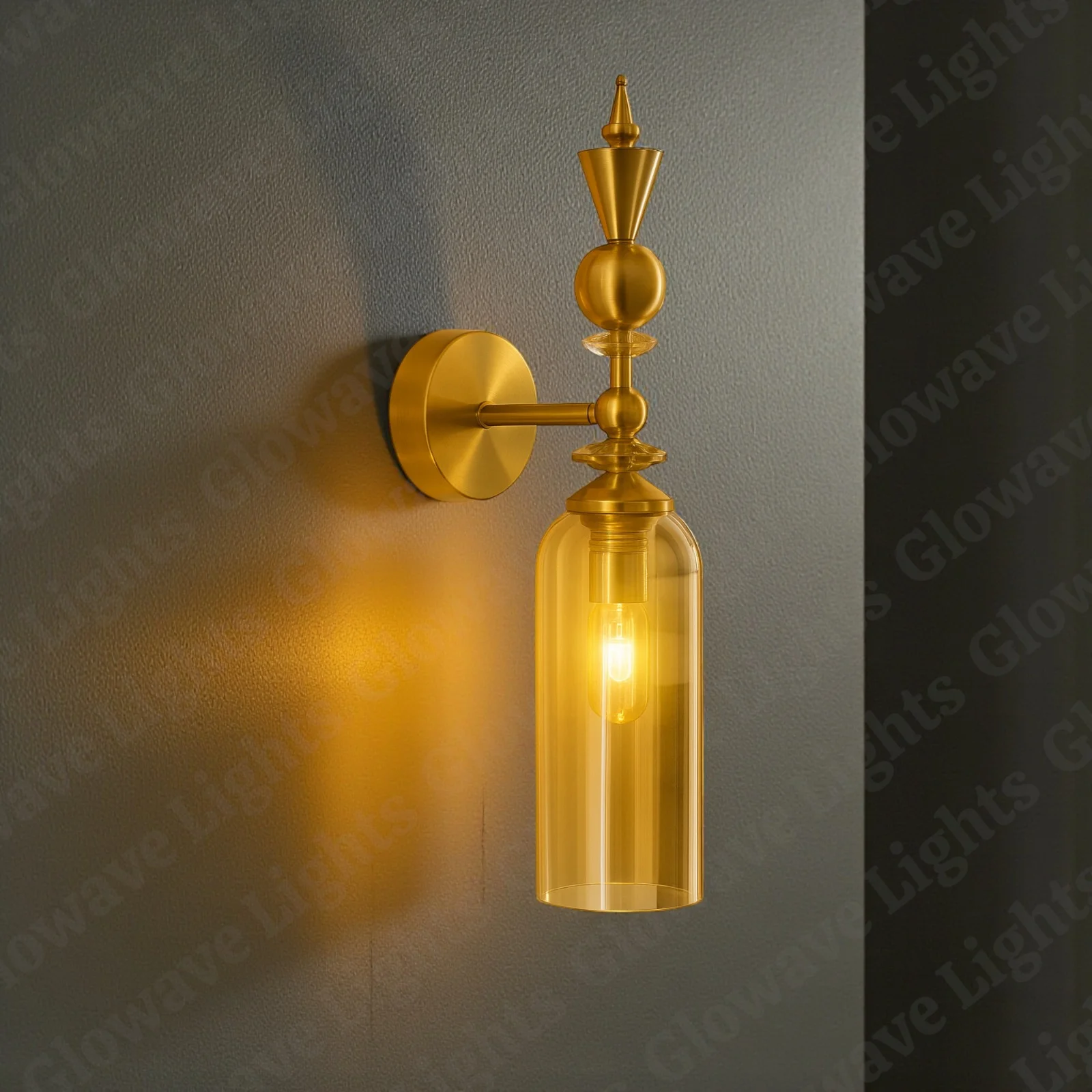 Creative Down Amber Glass Golden Finish Light Champagne Wall Lamp - Warm White