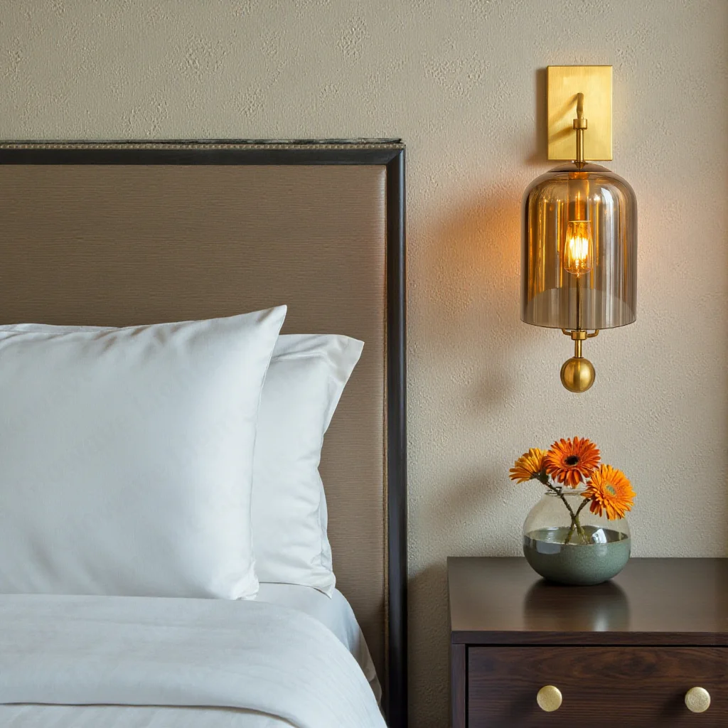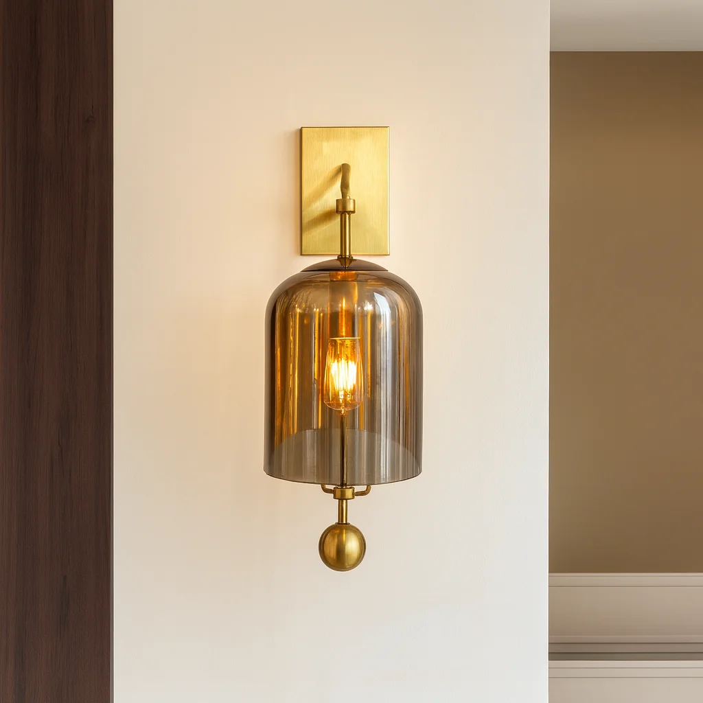 Creative Down Smoky Glass Golden Wall Lamp - Warm White