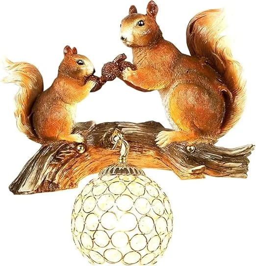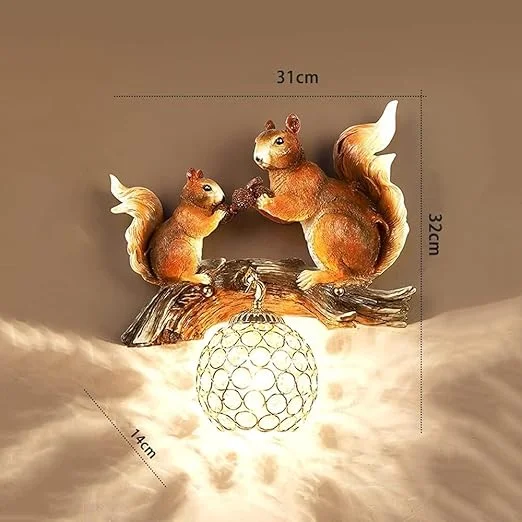 Cute Resin Brown Squirrels Holding Globe Wall Lamp - Warm White