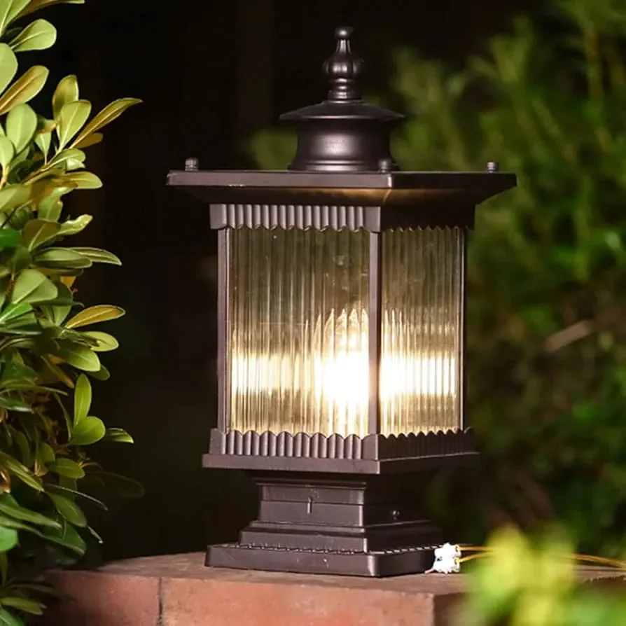 Decorative Black Square Post Light Pillar Light Column Light - Warm White