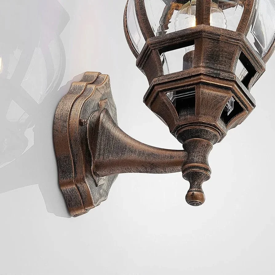 Decorative Outdoor Glass Wall Lamp Bronze Cage Die Casting Metal Wall Light, IP-65 - Warm White… (A-3/BG)