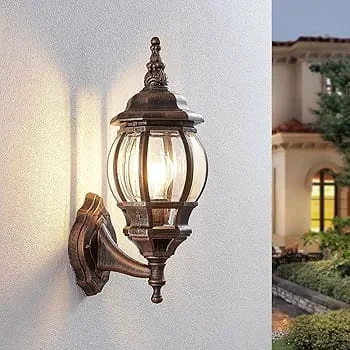 Vintage Black & Gold Finish Decorative Exterior Wall Sconce - Warm White