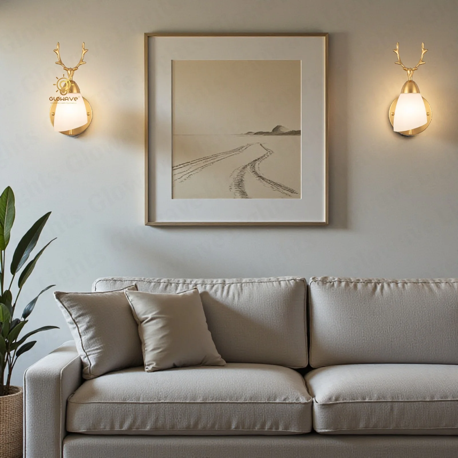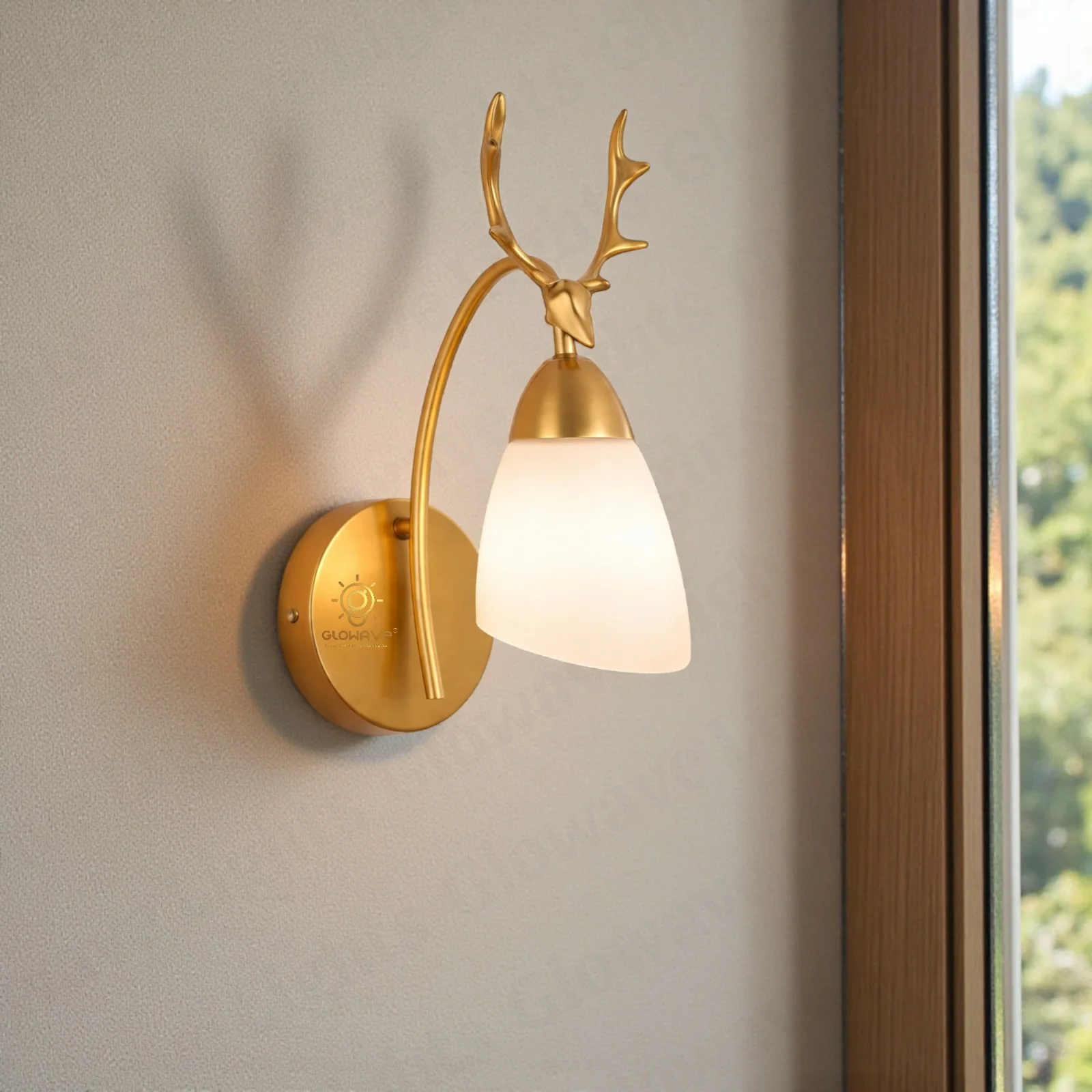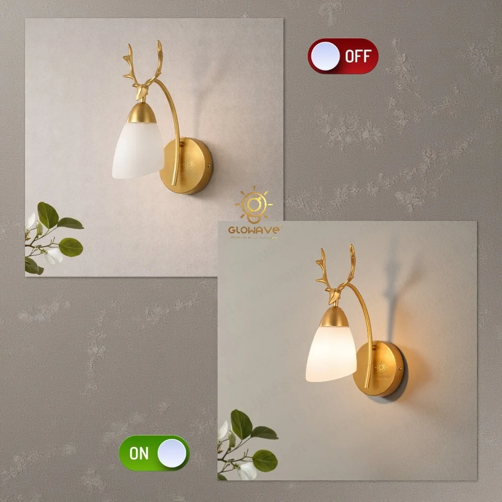 Deer Head Wall Light with Frosted Glass Shade Golden Metal Wall Lamp