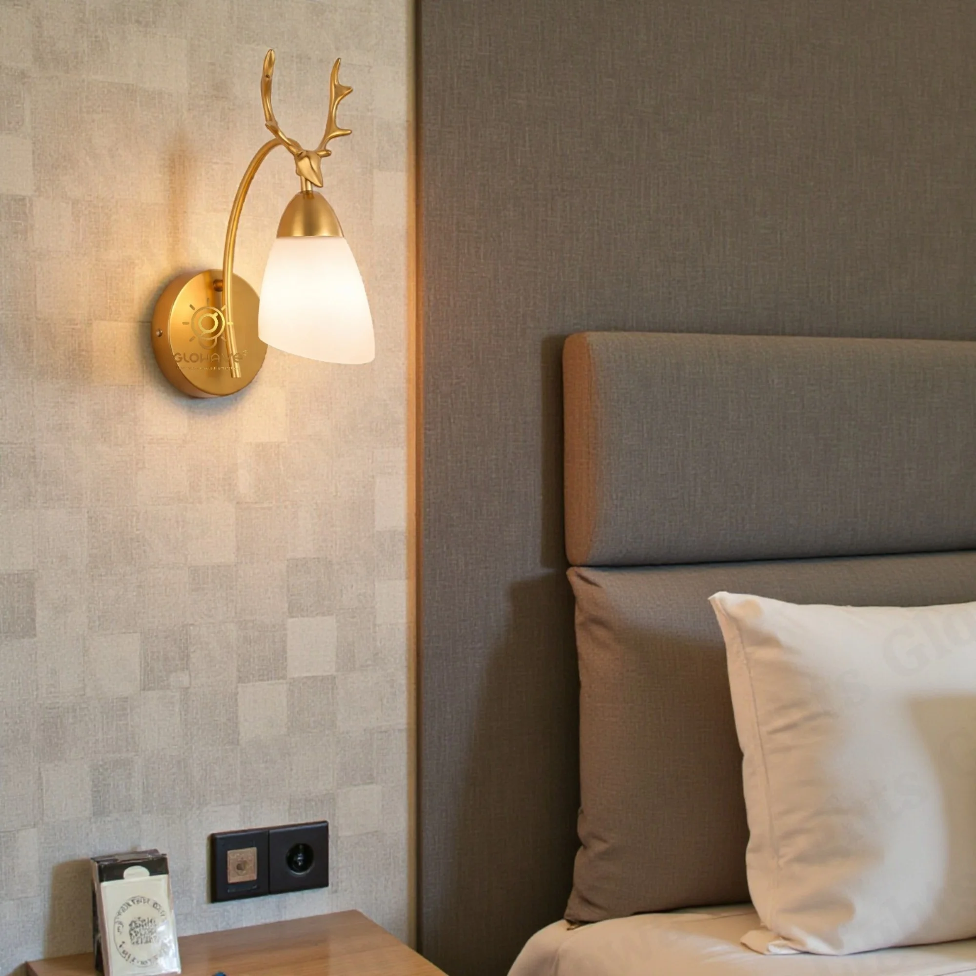 - Stylish Design: Golden finish with a deer head post modern lamp shade.