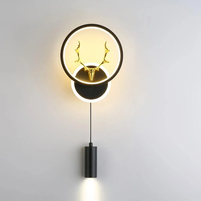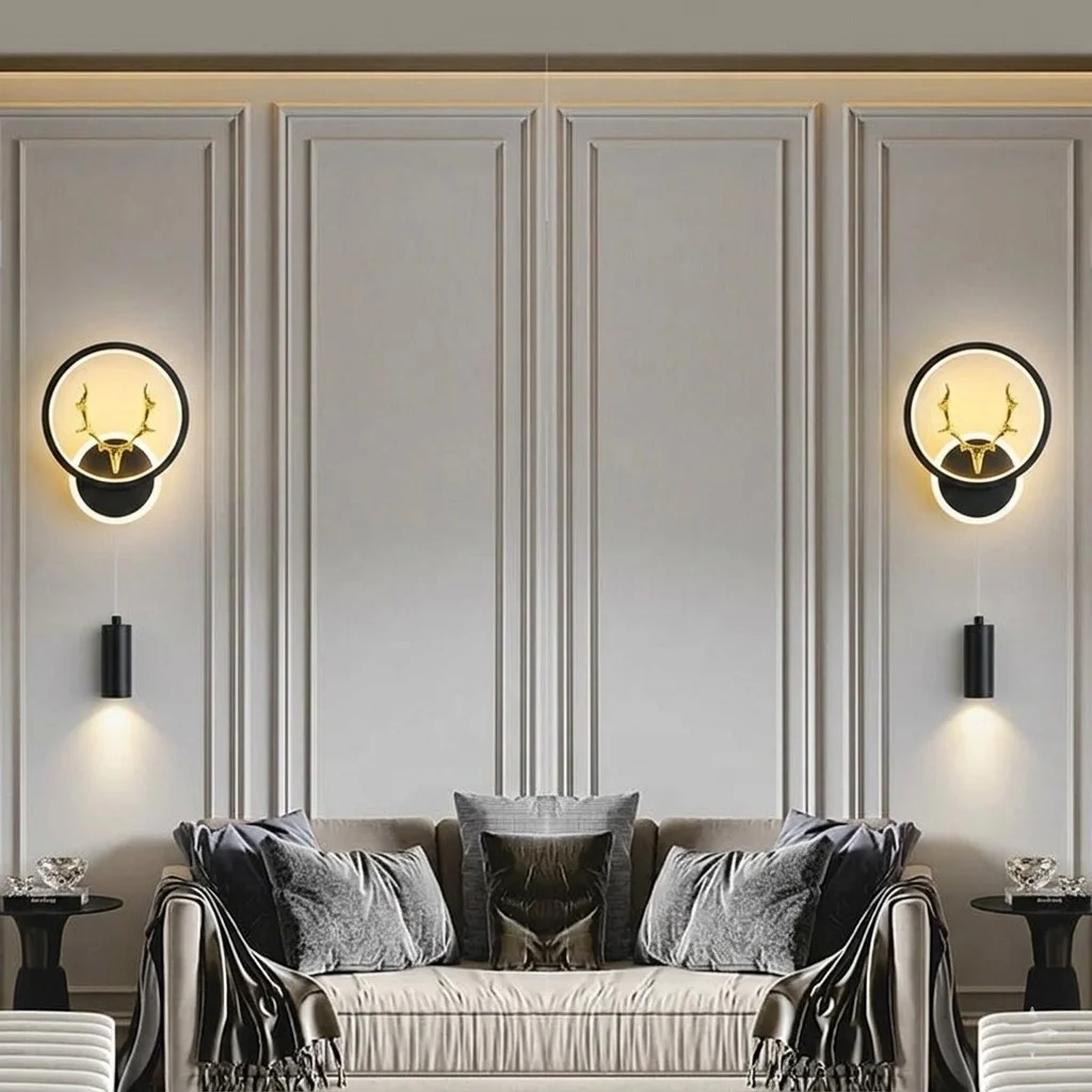 Dual LED Wall Light with Deer Head Design, Round Halo Wall Lamp with Adjustable Spotlight Light - Tricolour
