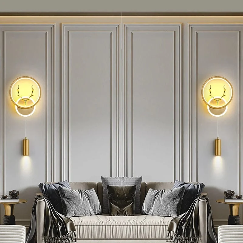 Dual LED Wall Light with Deer Head Design, Round Halo Wall Lamp with Adjustable Spotlight Light - Tricolour