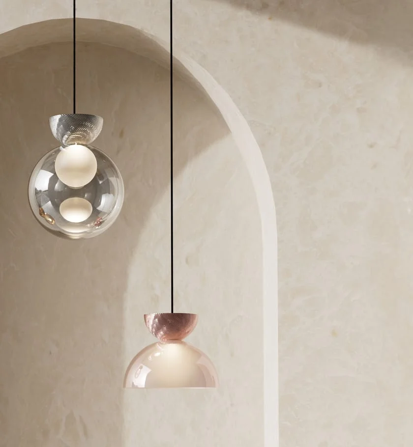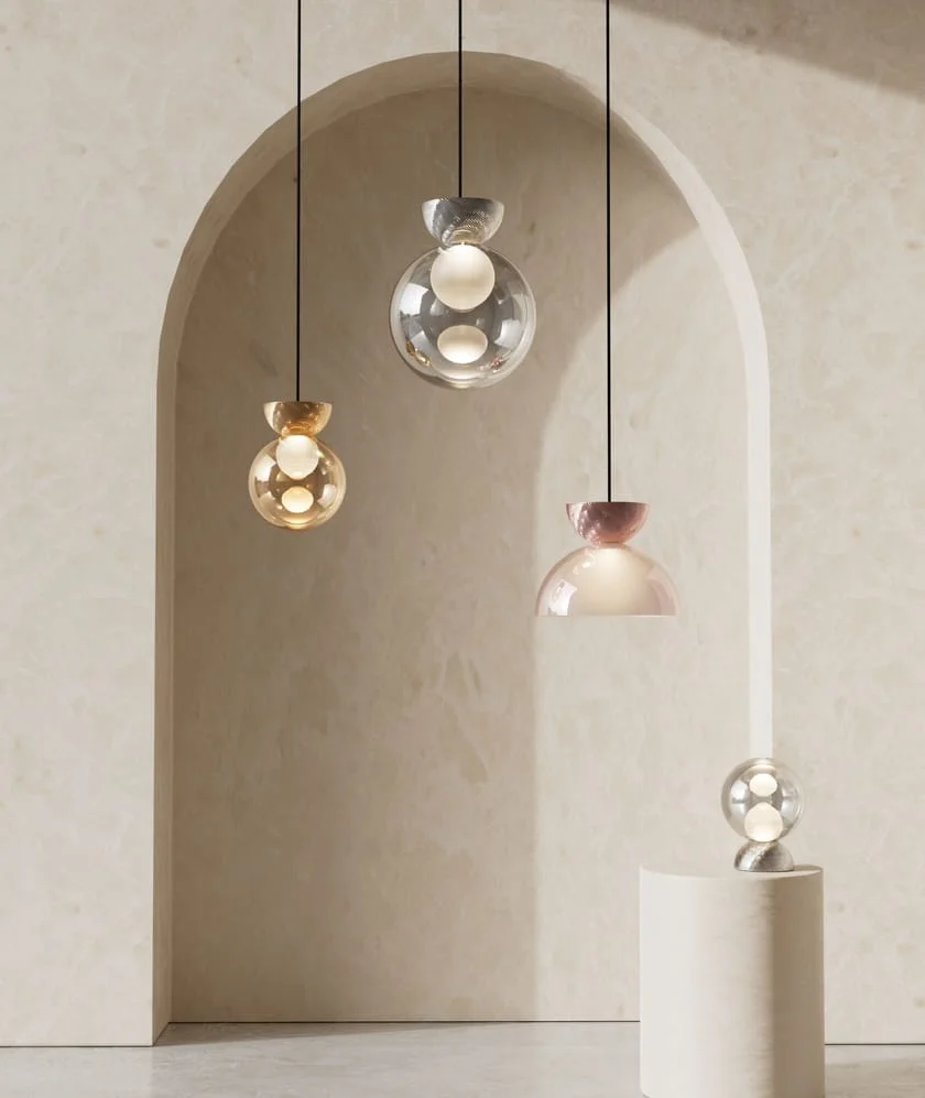Sphere Pendant Light with Gold Frame Hanging Ceiling Lamp - Tricolour
