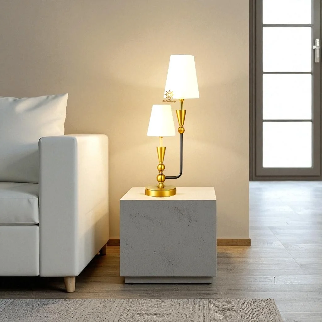 Illuminate your space with the elegant Glowave Fabric Shade Golden Base Dual Head Desk Table Lamp. Designed for both home and office use, this lamp seamlessly blends modern aesthetics with functional lighting. Featuring a sleek golden base and a stylish fabric shade, it casts a soft, warm white glow, perfect for creating a cozy and inviting atmosphere. Whether you're working at your desk, reading, or adding a touch of ambiance to your living room, this lamp is the ideal choice. The bulb is included, ensuring hassle-free setup and energy-efficient lighting. Enhance the beauty of your space while enjoying the perfect balance of style and practicality.