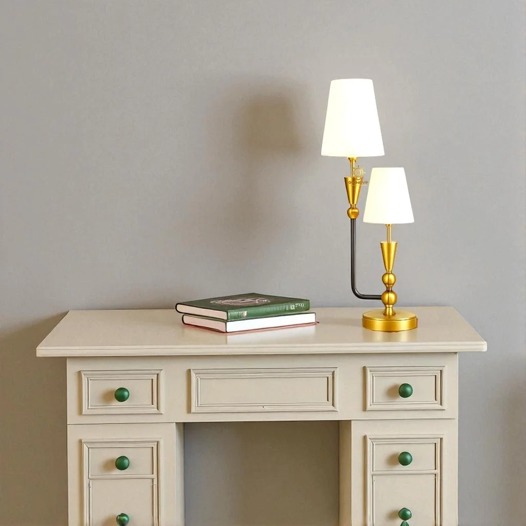 Fabric Shade Golden Base Dual Head Desk Table Lamp - Warm White