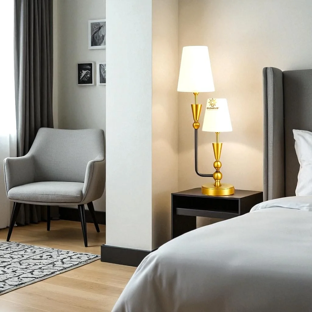 - Sleek and Modern Design: Fabric shade with a golden base dual head design, adding sophistication to any room.