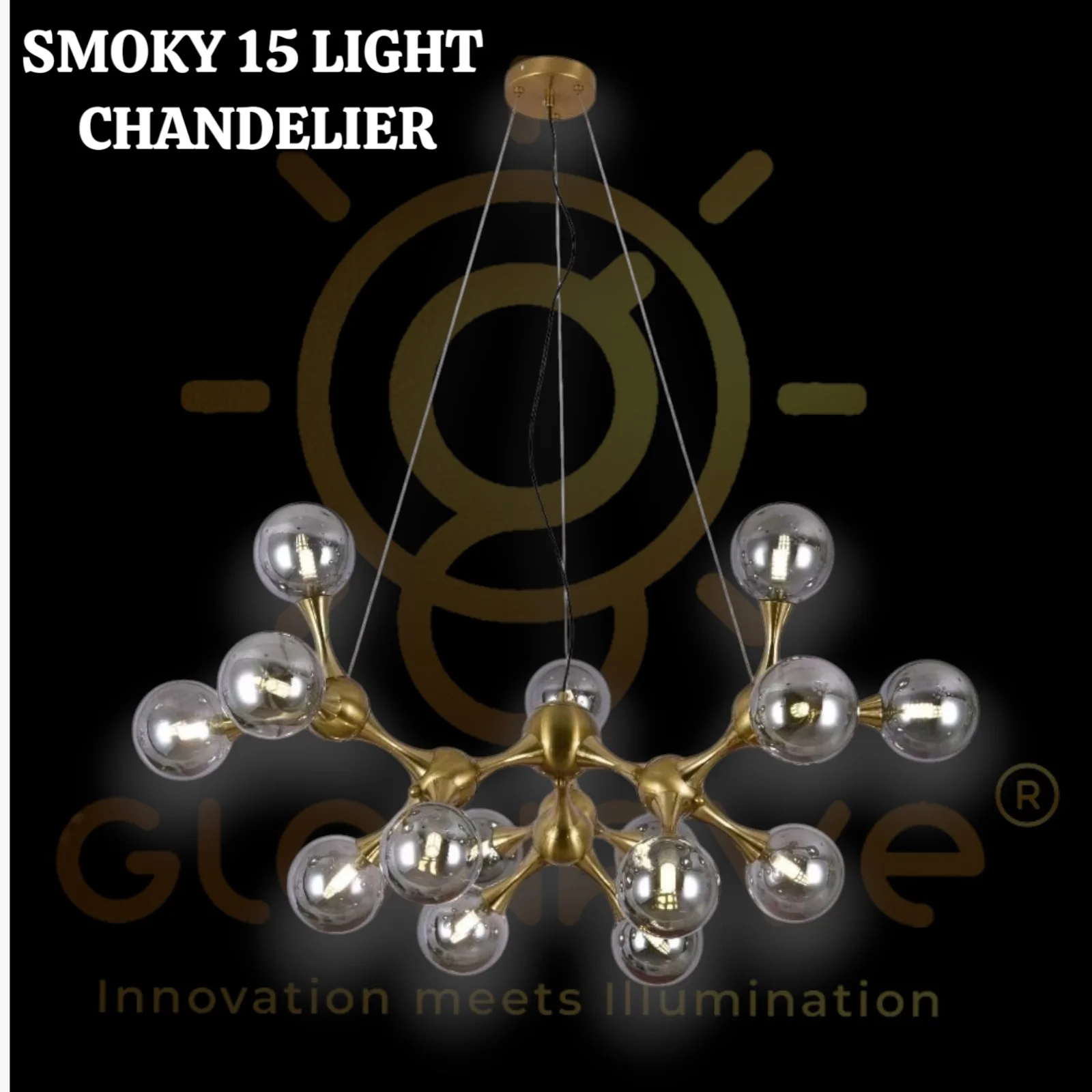 - Linear shaped design with 15 smoky glass balls.