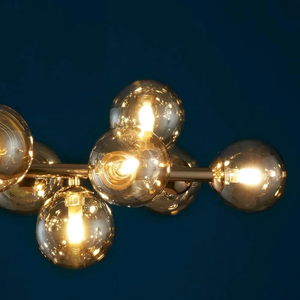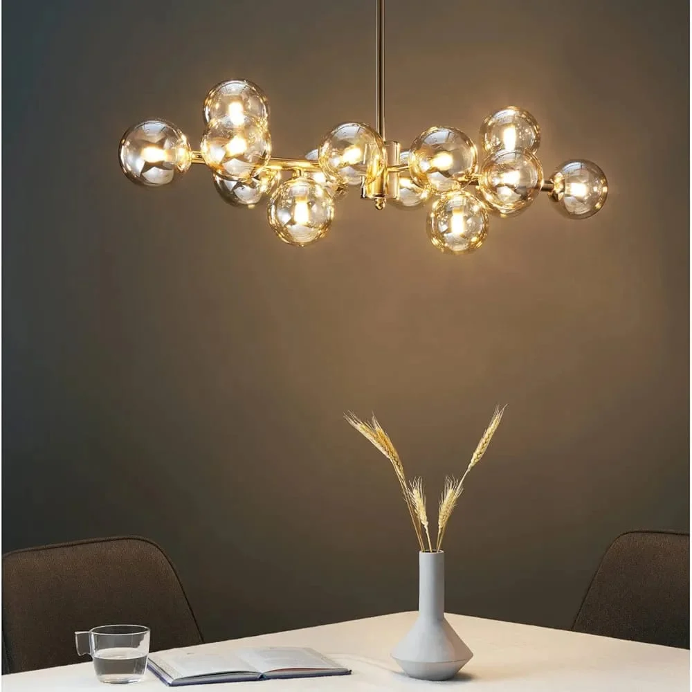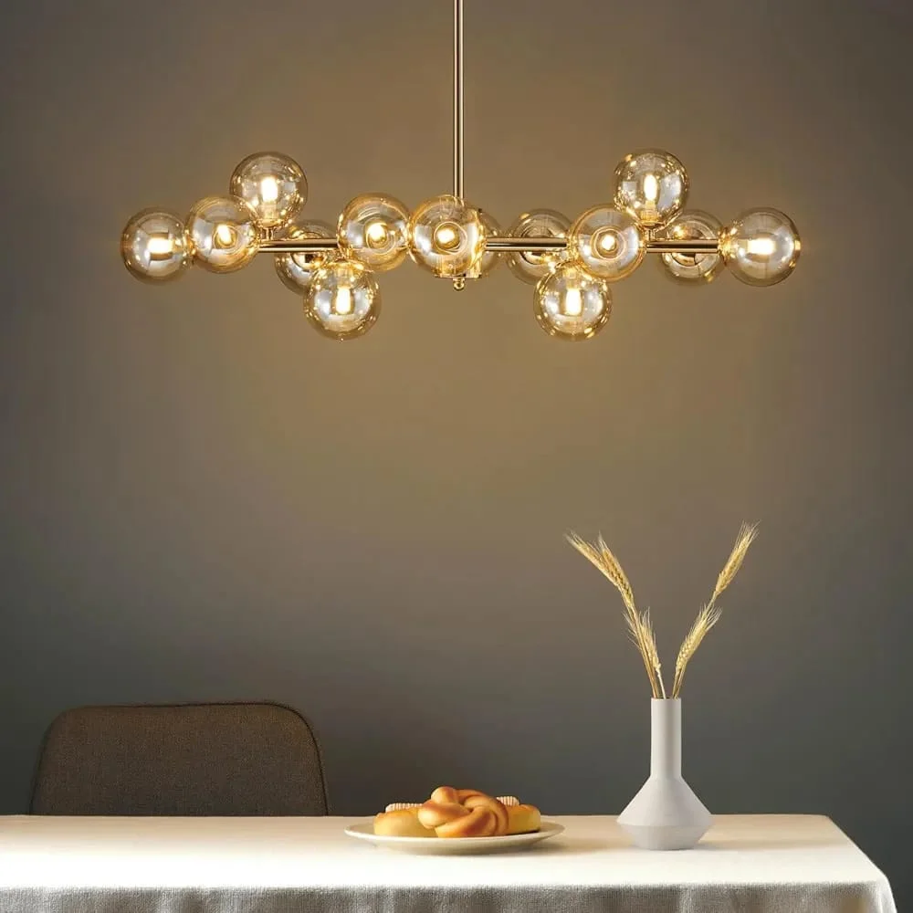 Glass Balls Linear Pendant LED 16 Amber Glass Balls Hanging Light Chandelier - Warm White