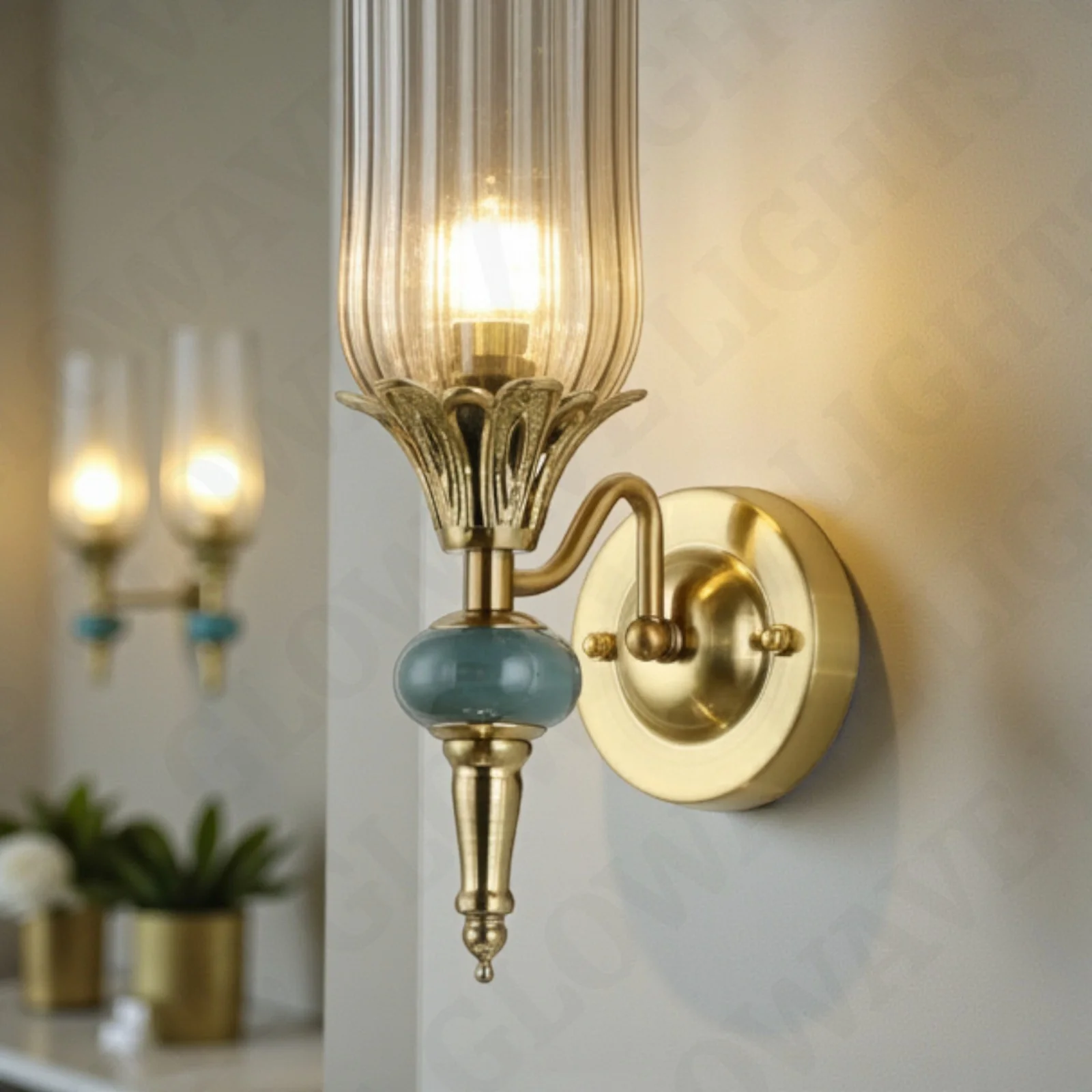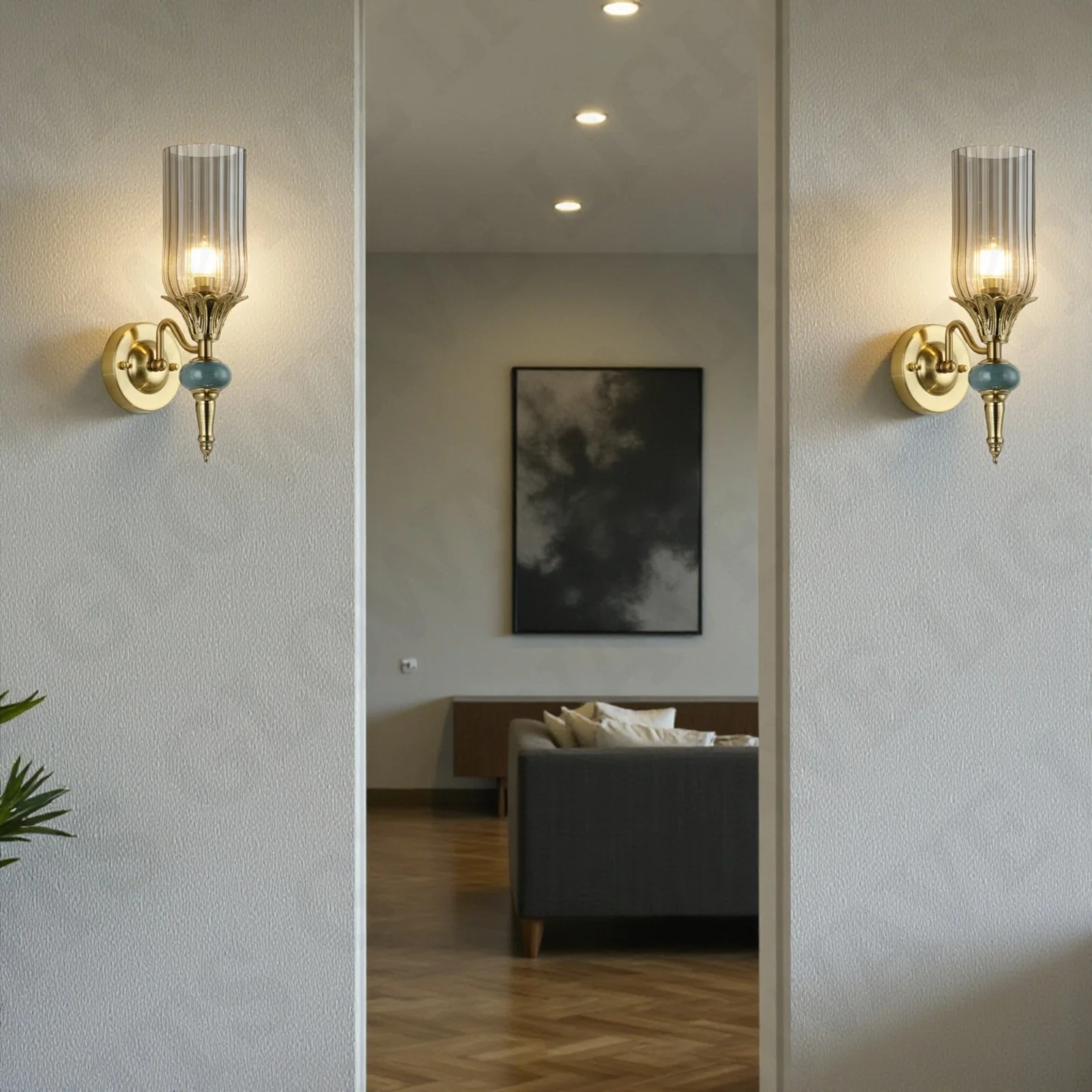- Stylish Design: Gold Finish Smoky Glass Shade Wall Sconce.