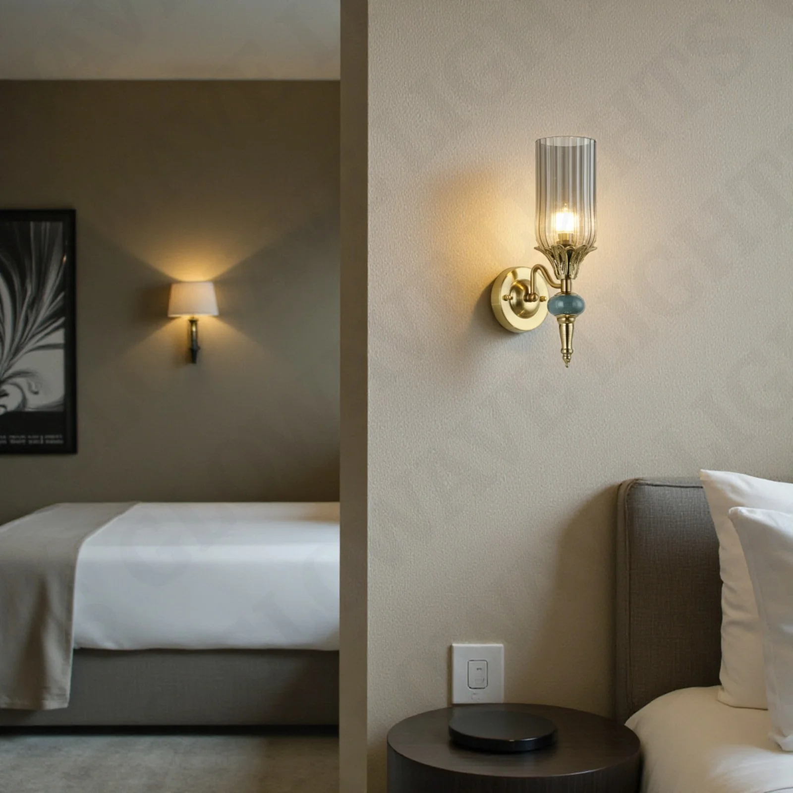 Luxury Brass Wall Sconce with Smoky Glass Cylinder Shade Lighting - Warm White