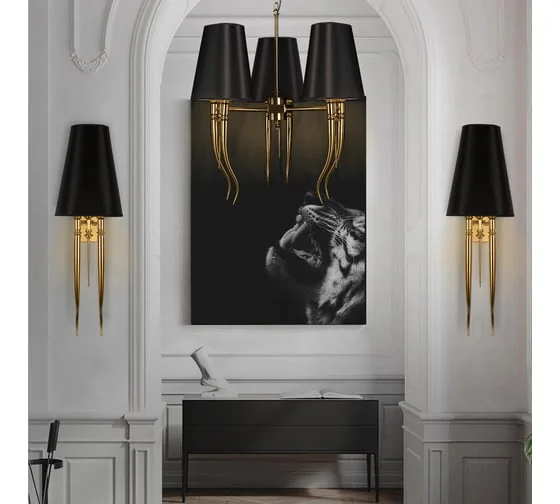Gold Finish Base Black Fabric Lampshade Wall Lamp - Warm White
