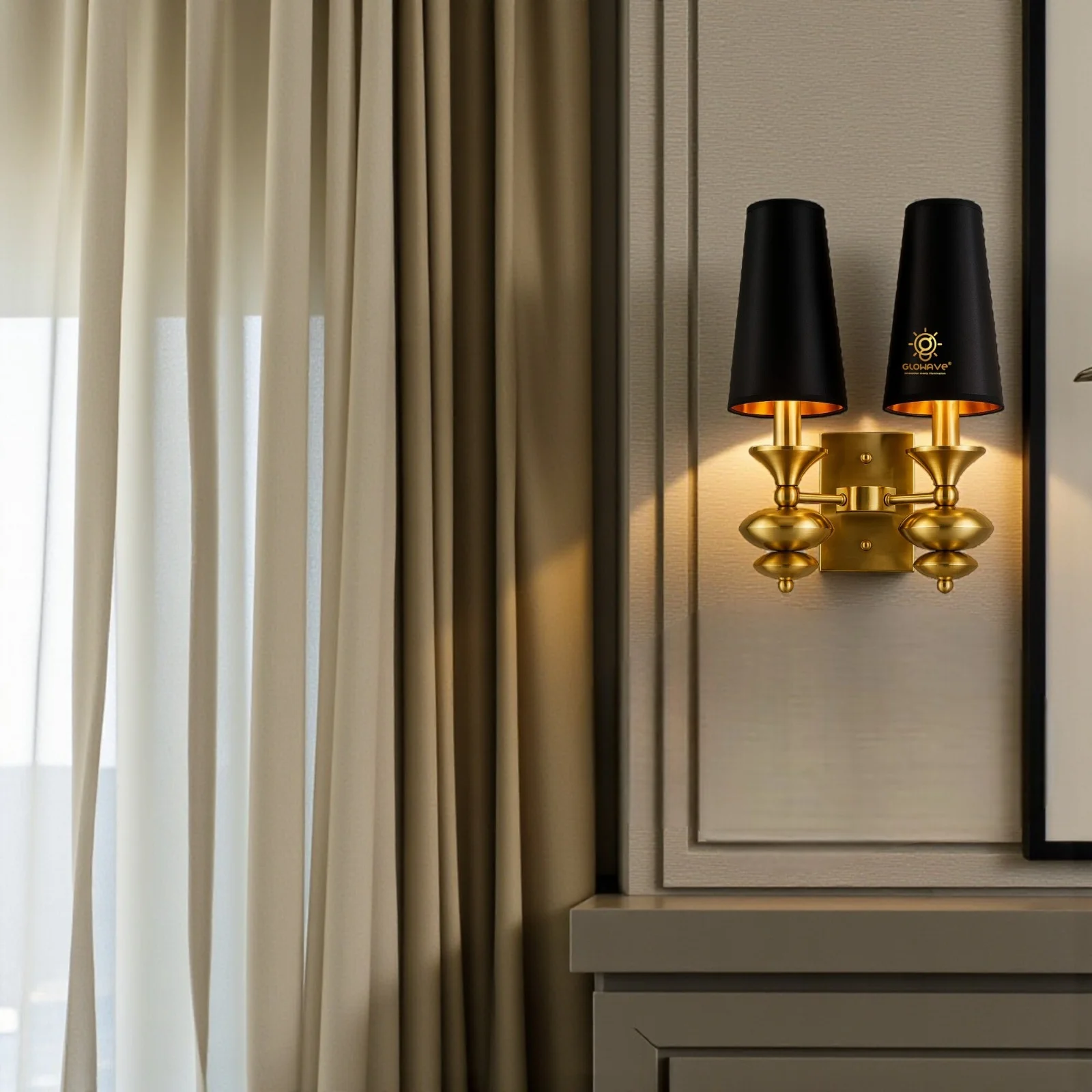 - Stylish Design: Gold Finish Black Fabric Shade Wall Sconce.