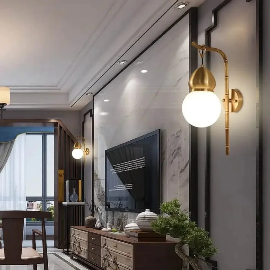 Gold Finish Frosted Glass Ball Wall Lamp - Warm White