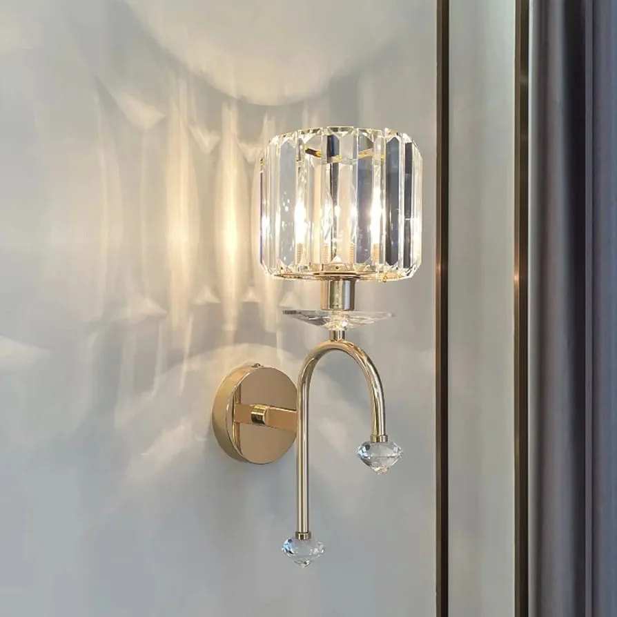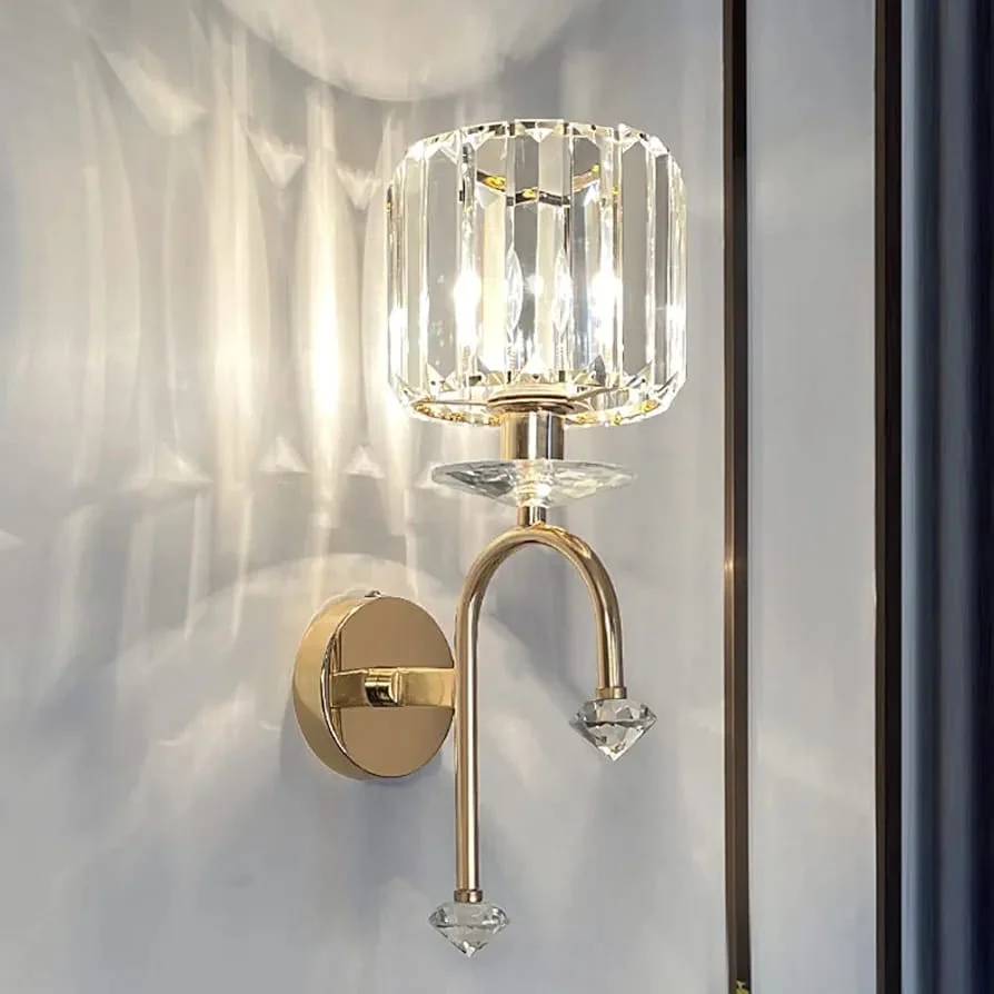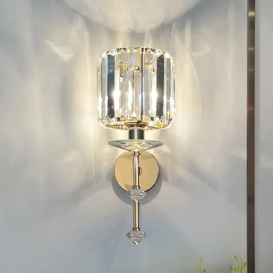 Enhance your home decor with the Gold Finish Crystal Glass Cylindrical Shade Wall Lamp. This exquisite sconce fixture, perfect for living rooms, bedrooms, and bedsides, boasts a timeless antique brass finish and clear glass design. It casts a warm white light, creating a cozy and nostalgic atmosphere. Ideal for adding vintage charm to any space.