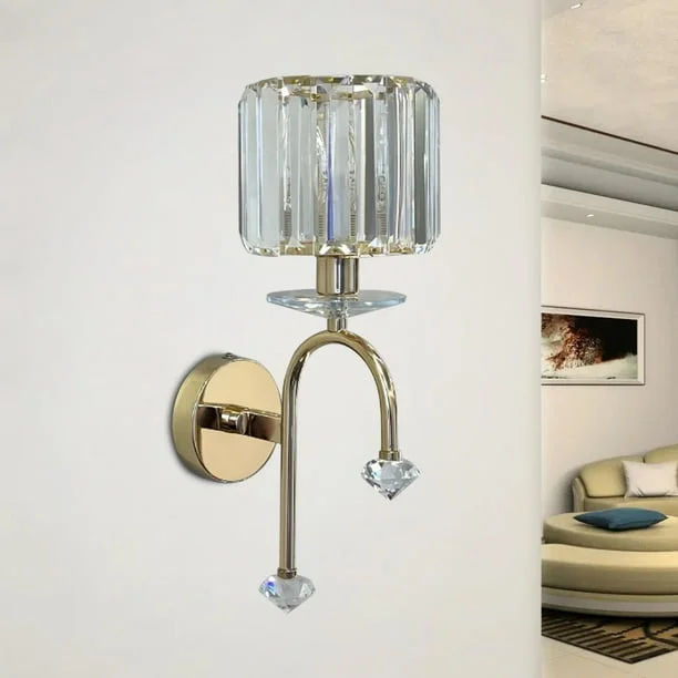 Gold Finish Light Crystal Glass Cylindrical Shade Wall Lamp - Warm White
