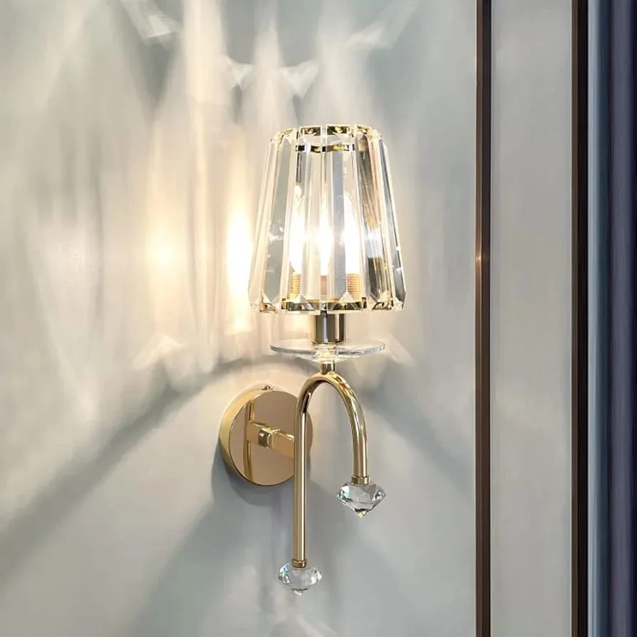 - Stylish Design: Gold Finish Glass Cylindrical Shade Wall Sconce.