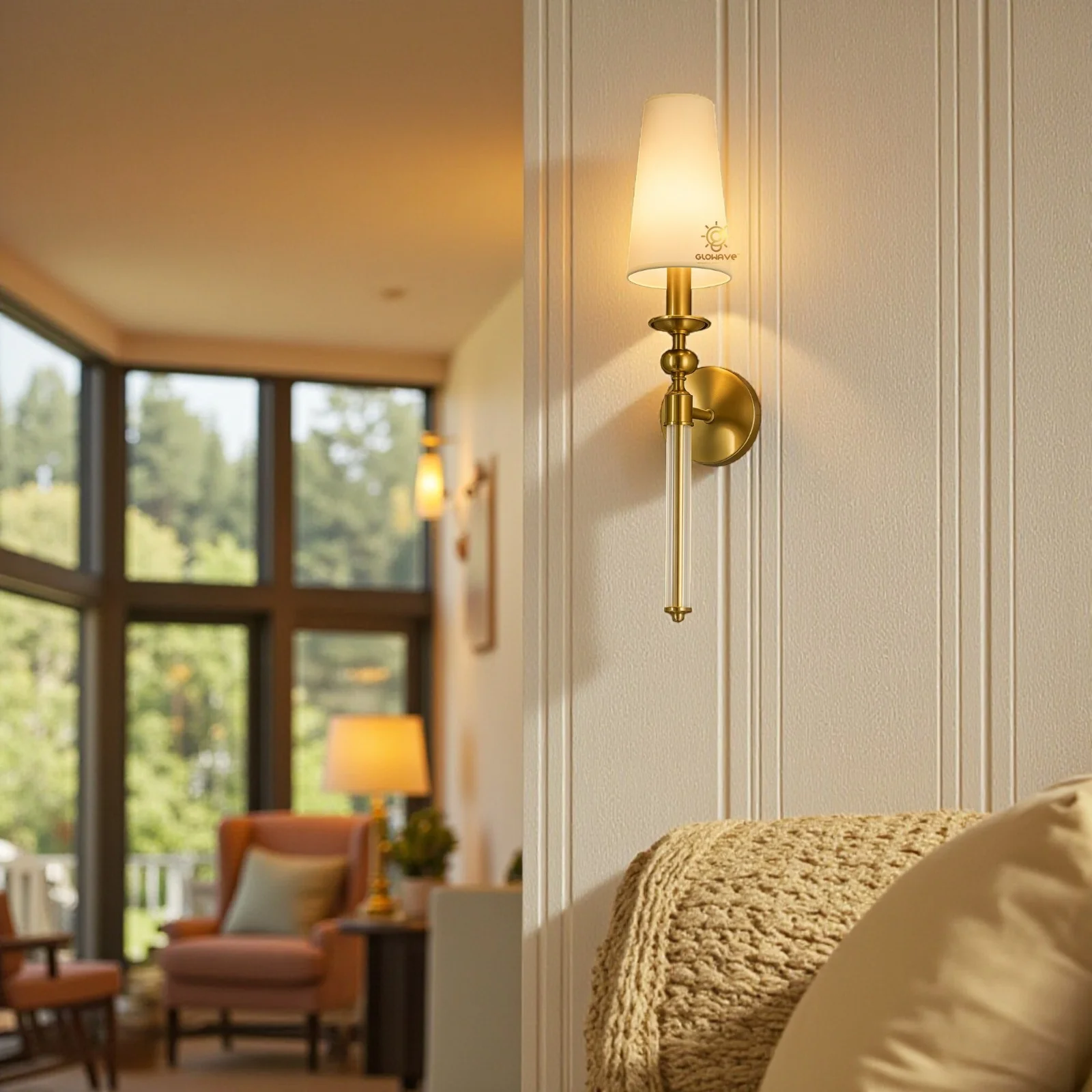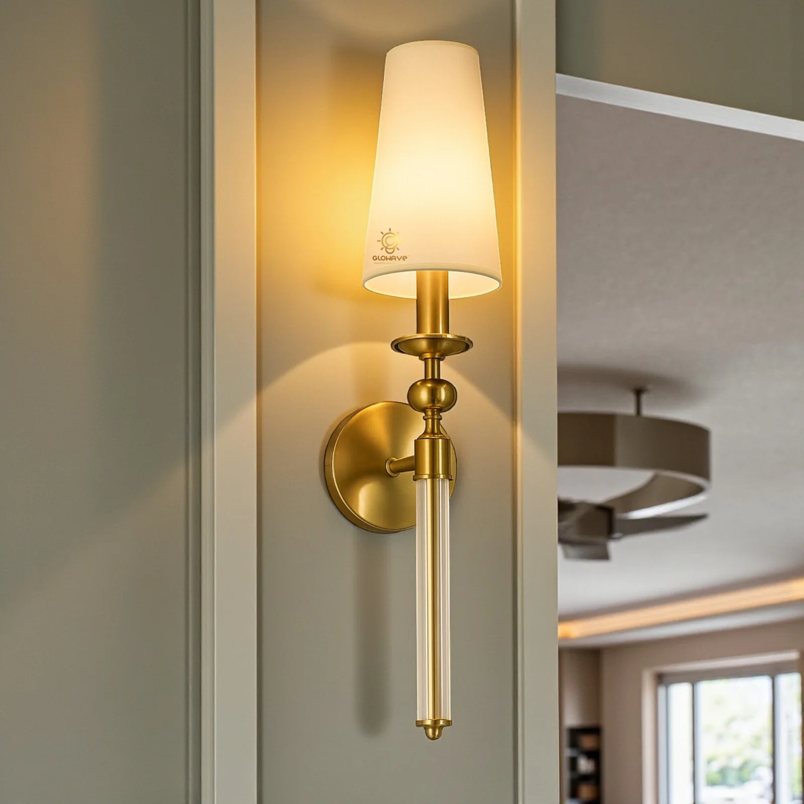 - Stylish Design: Gold Finish Glass Shade Wall Sconce.