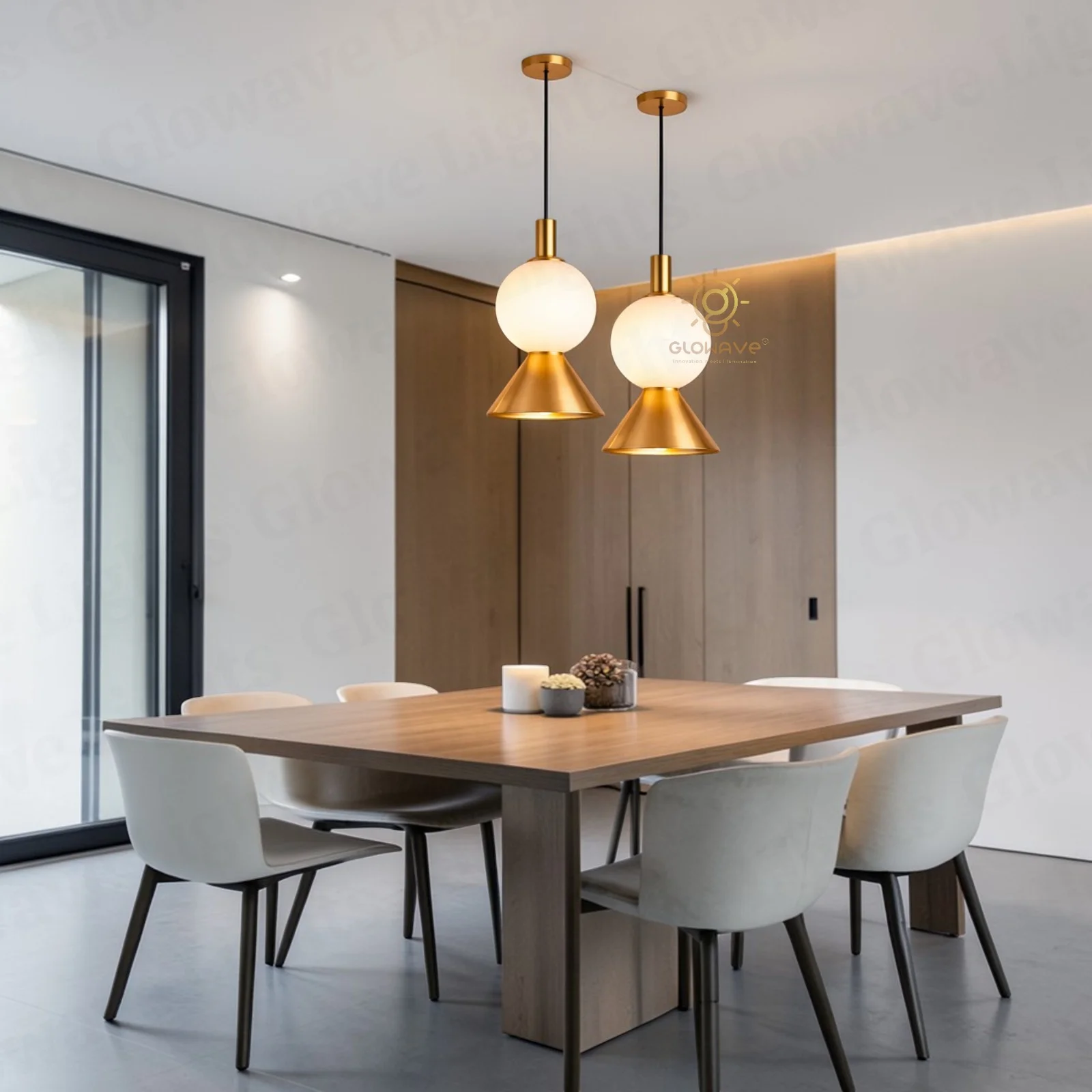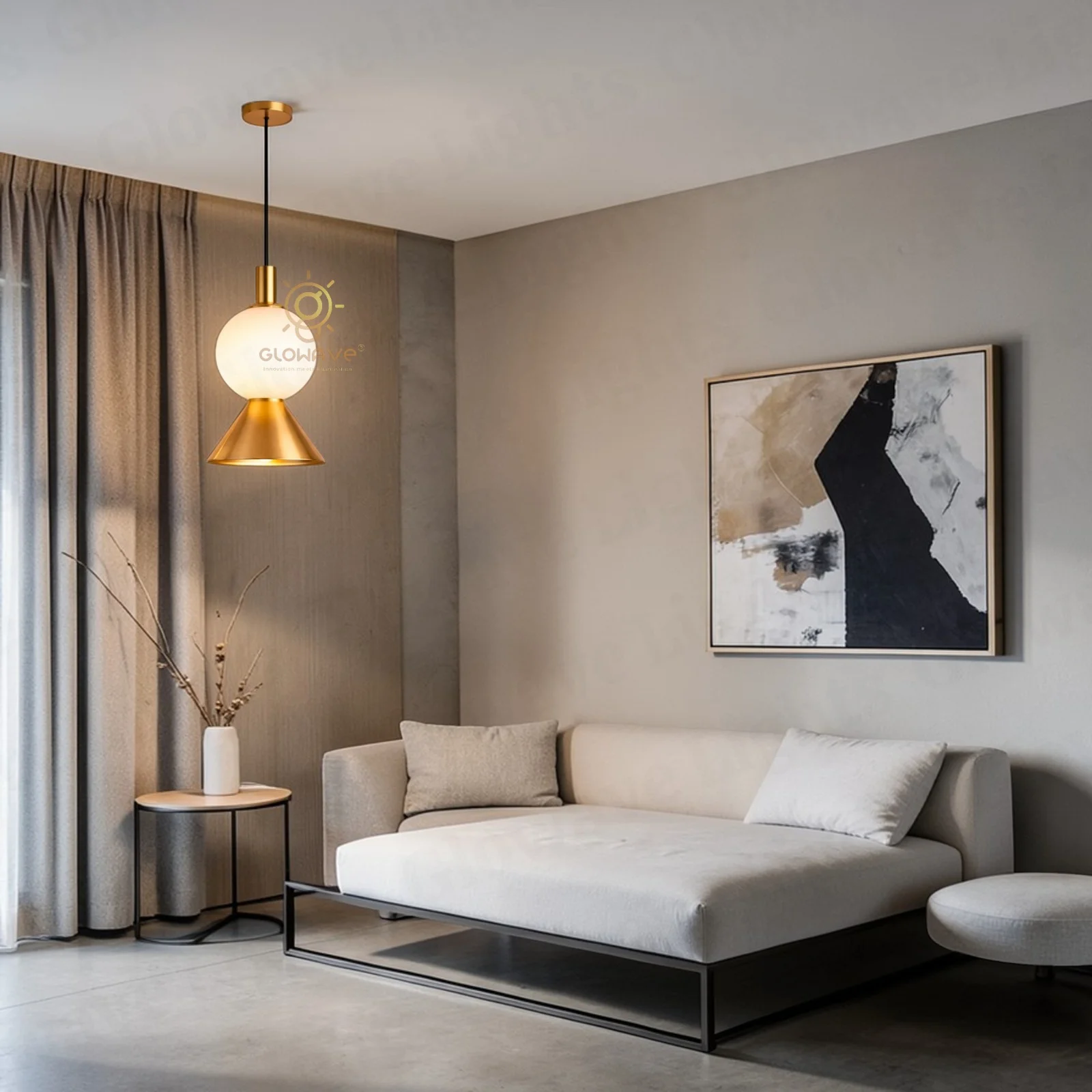 Sphere Pendant Light with Gold Frame Hanging Ceiling Lamp - Tricolour