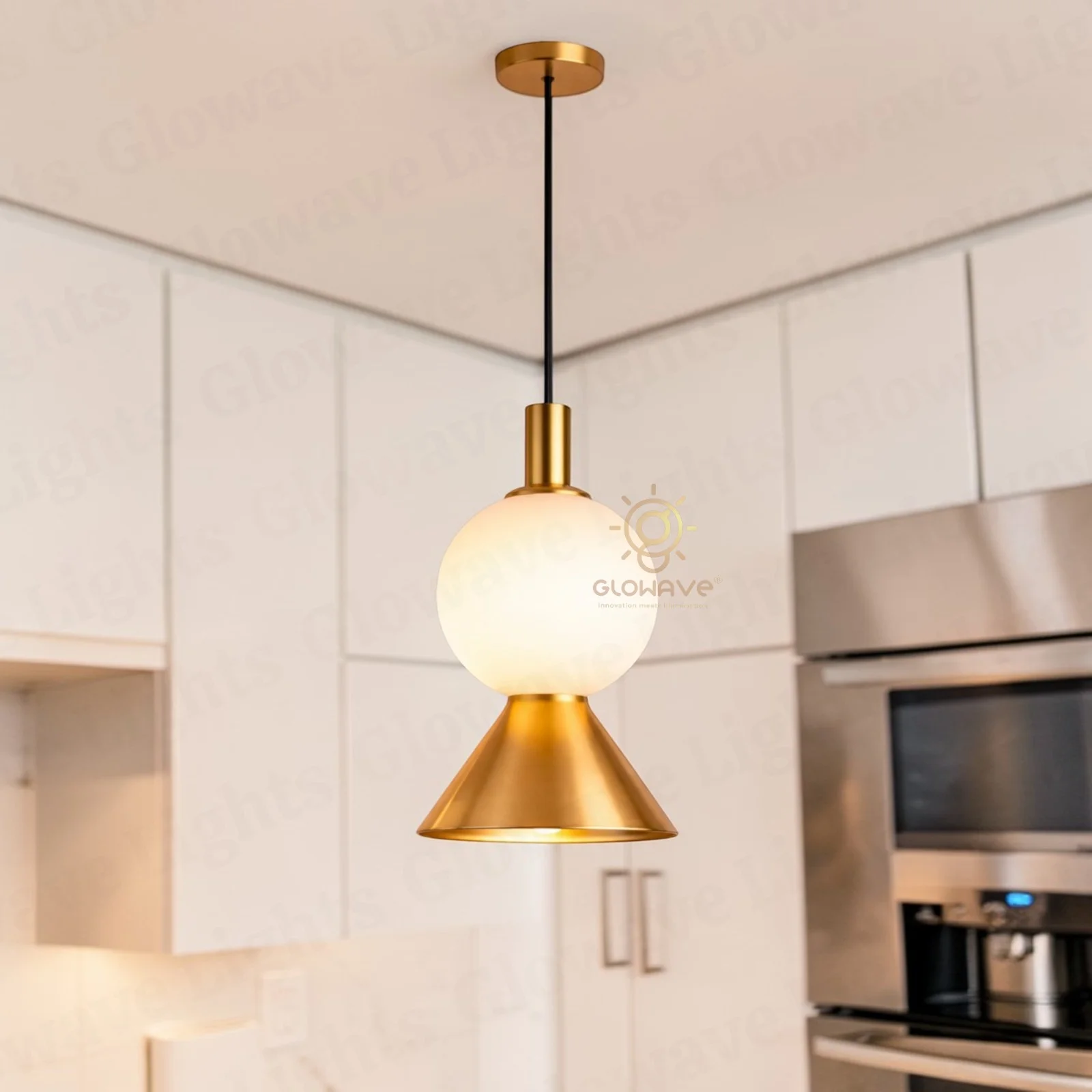 Globe Pendant Light in Brushed Gold Finish Contemporary Hanging Ceiling Lamp