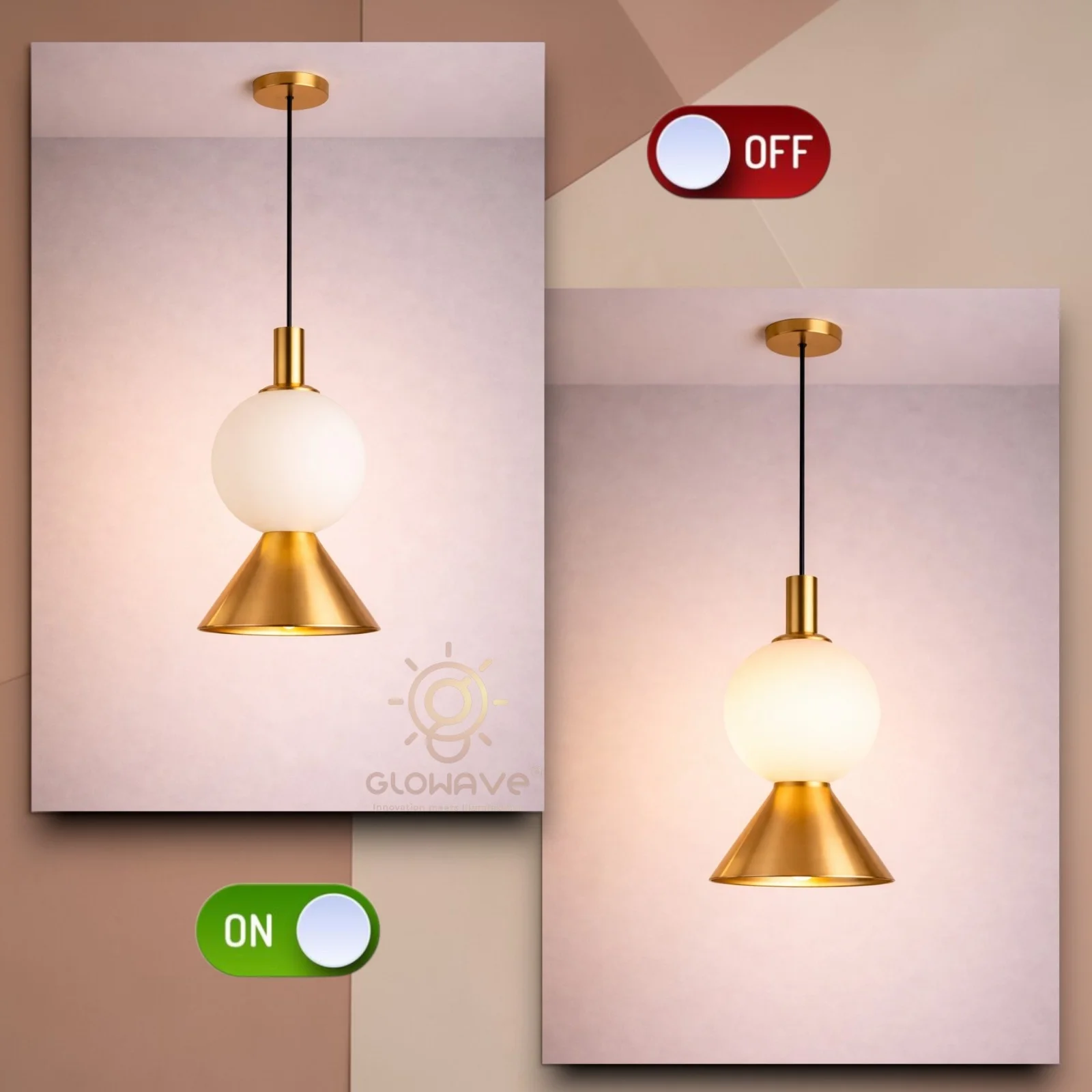 Illuminate your space with the Round Luxurious Hanging/Pendant Light, a stunning addition to elevate your decor. This pendant light boasts a round ball Gold finish, adding a touch of sophistication to any room. This round ball pendant light strikes the perfect balance between functionality and energy efficiency. It provides ample illumination while enhancing the ambiance of your space. Crafted with attention to detail, the luxurious design of this hanging light makes it a focal point in any room. The gold finish not only exudes elegance but also complements a variety of interior styles. Installation is a breeze, allowing you to enjoy the charm and allure of this pendant light in no time. Upgrade your space with the Luxurious Hanging/Pendant Light (Gold Round) and bask in the warm, inviting glow it brings to your home.