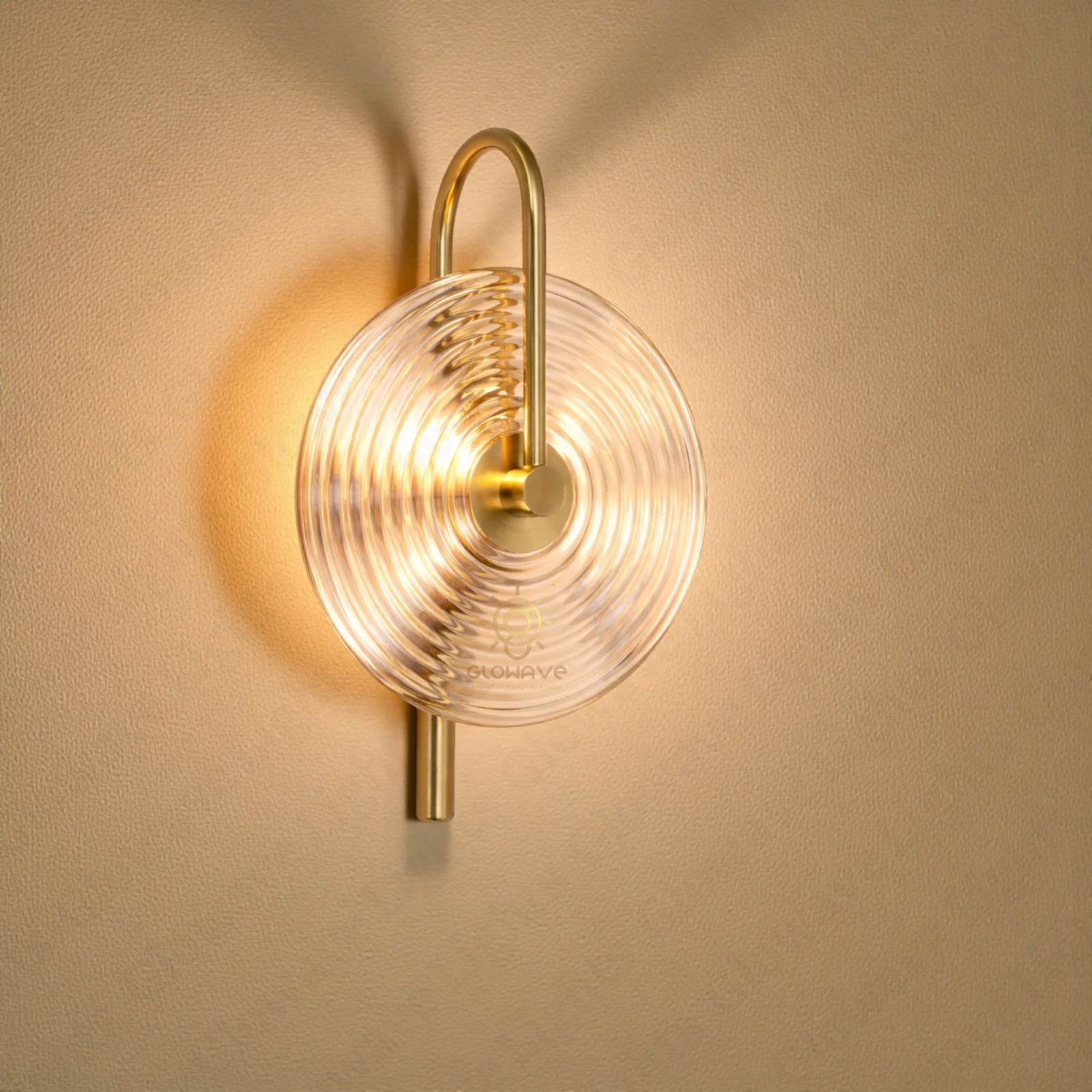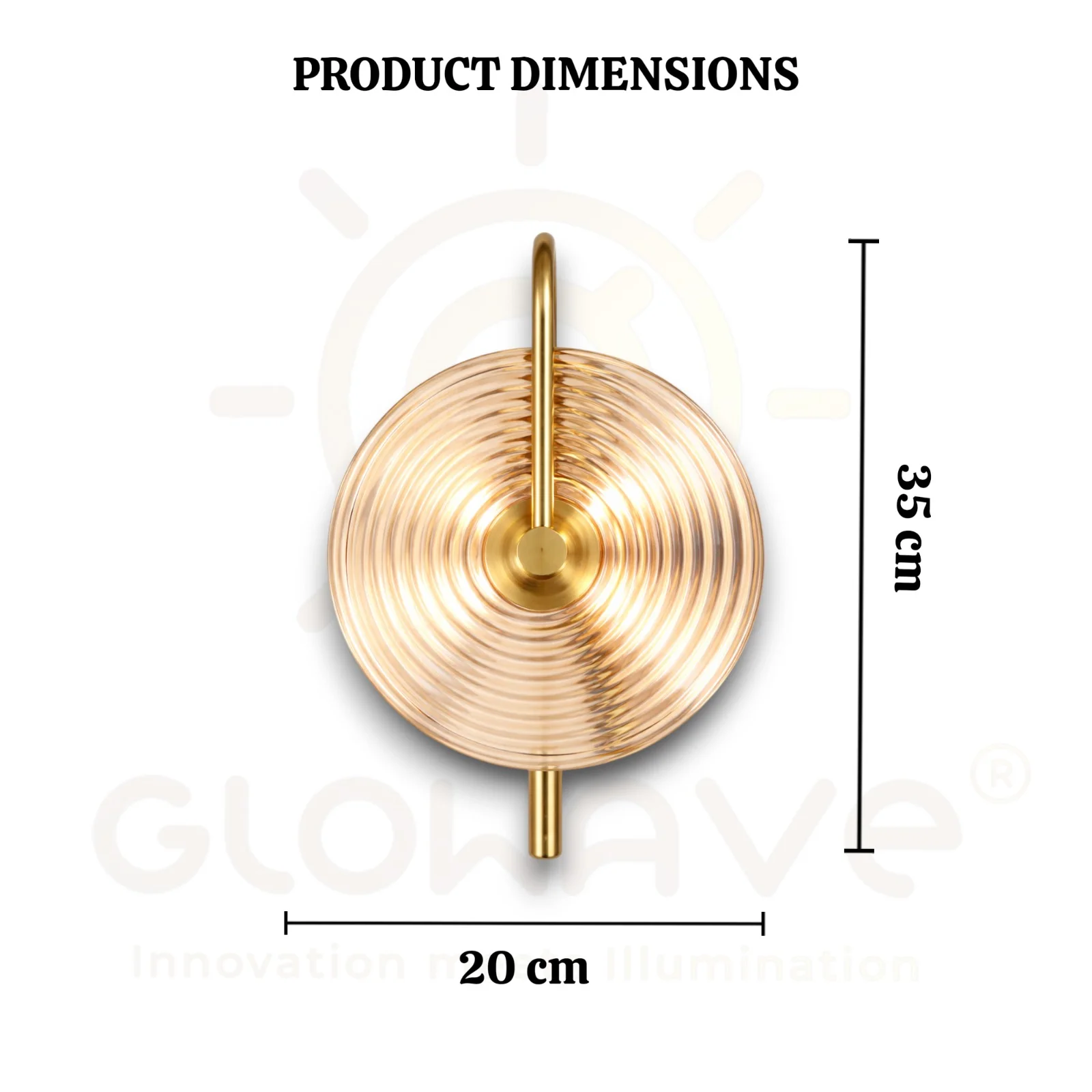 - Stylish Design: Gold Finish Glass Round Shape Wall Sconce.