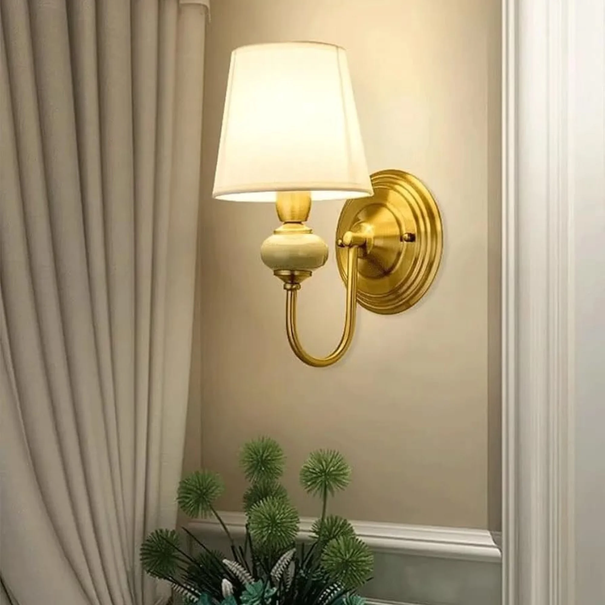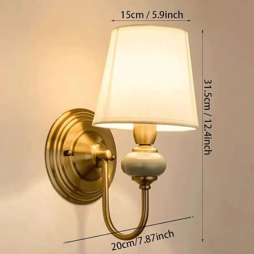 Gold Wall Light with Fabric Shade, Elegant Wall Sconce Lamp - Warm White