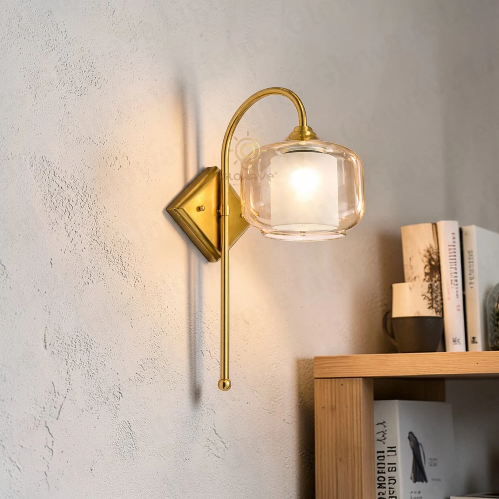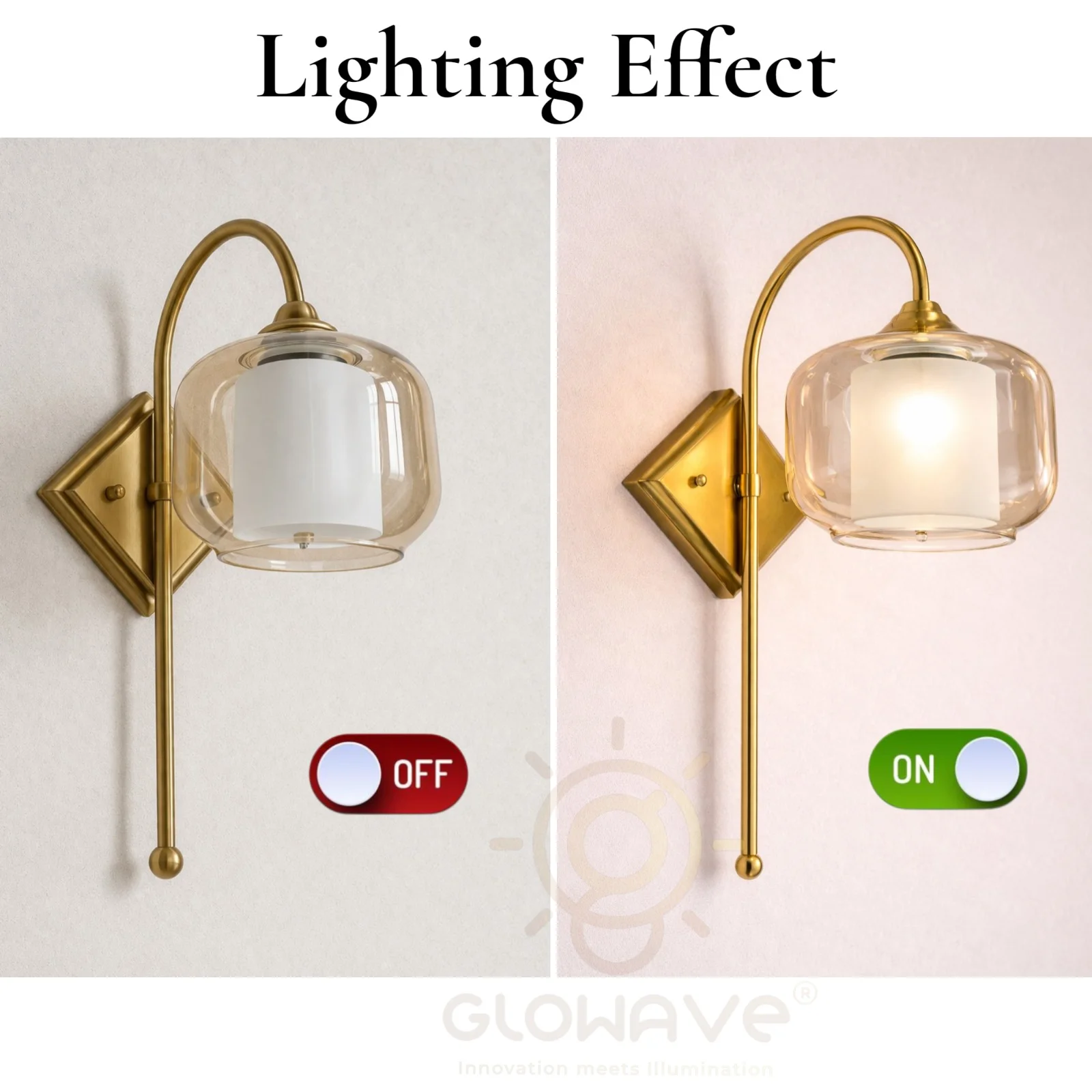 Upgrade your interior décor with this modern gold double glass wall light featuring a stylish square base. Designed with a sleek metal arm and elegant glass shade, this wall sconce adds a luxurious and contemporary touch to any space. The double glass design enhances the lighting effect, creating a soft and warm glow that makes your room feel comfortable and inviting.